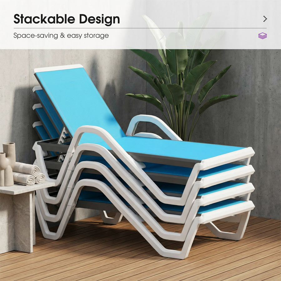 PURPLE LEAF Patio Chaise Lounge Plastic Pool Outdoor Lounge Chair with Aluminum Frame Stackable Patio Tanning Chairs for Poolside Sunbathing Beach Deck Yard