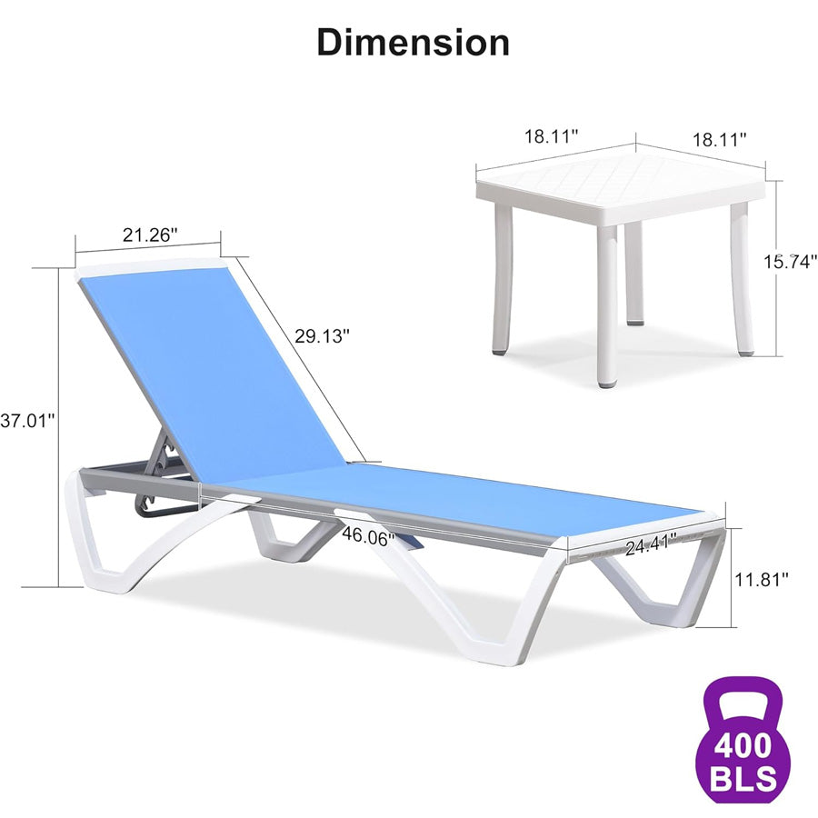PURPLE LEAF Patio Chaise Lounge Chair Outside Aluminum Plastic Stackable Tanning Chairs for Pool Sunbathing Beach Deck Outdoor Lounger