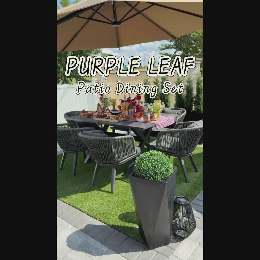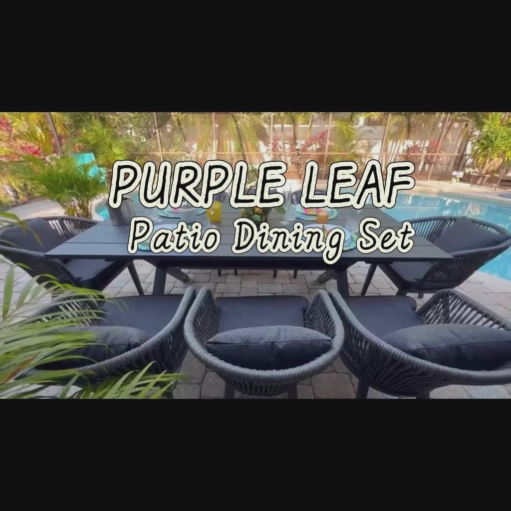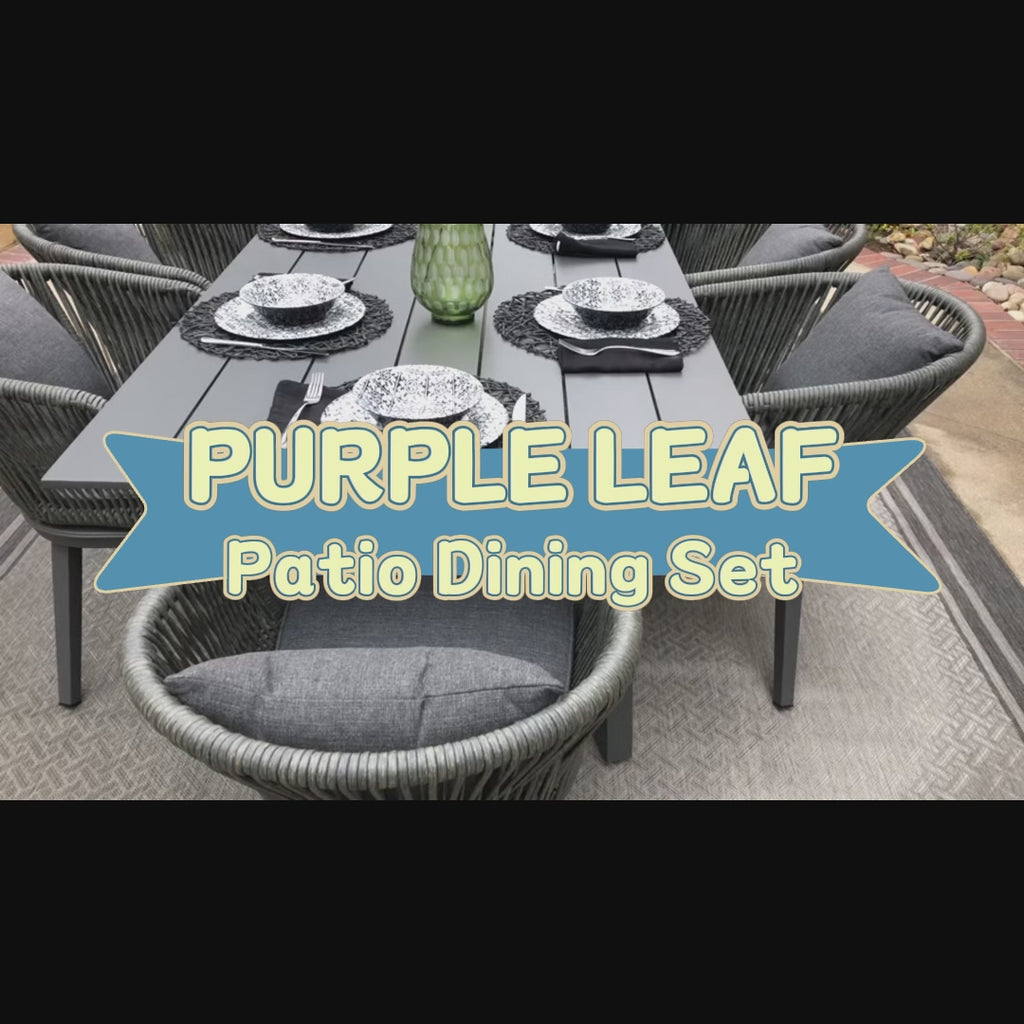 PURPLE LEAF Patio Dining Sets with Aluminum Frame Table & Handwoven Wicker Chairs Grey