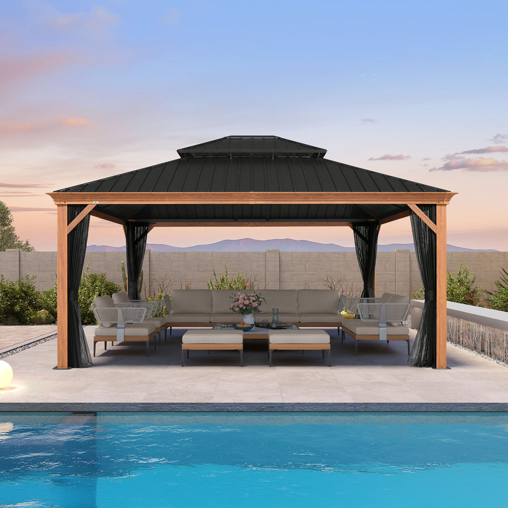 - [ Netting Included ] Comes with the removable upgraded netting, more durable, keeps bugs out of the gazebo. Curtain NOT INCLUDED.