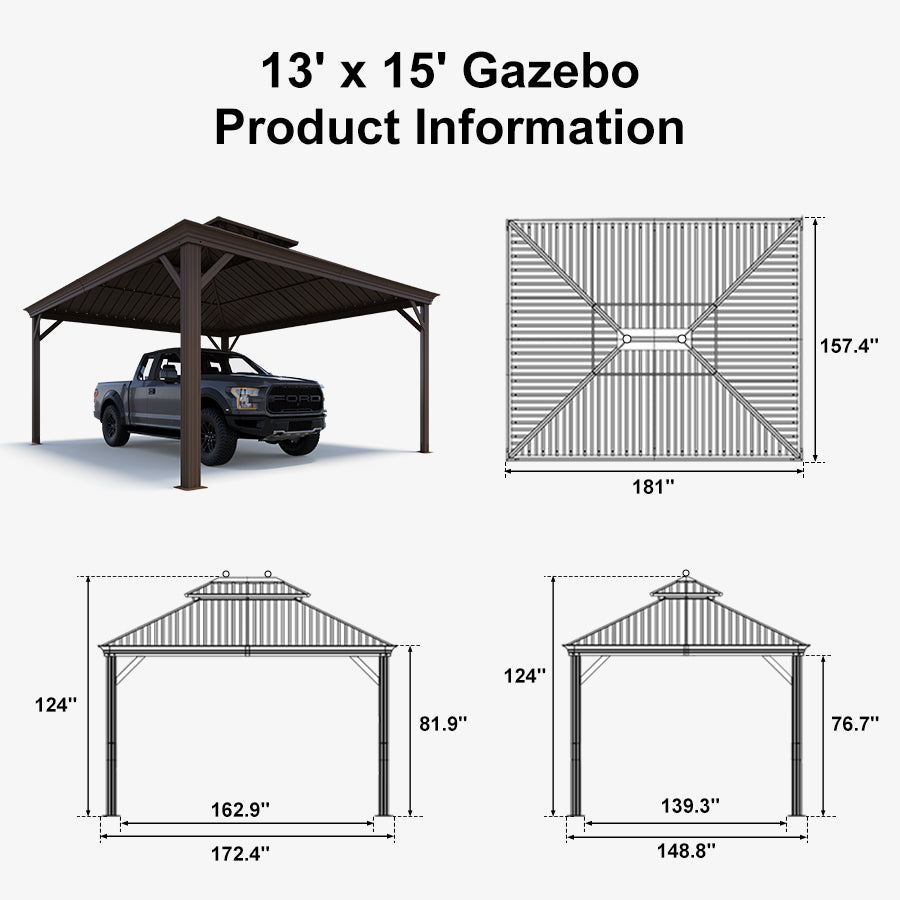 - [ Elegant Design ] Gazebo-style carports offer reliable sun and rain protection while adding elegance to your garden, patio, or driveway.