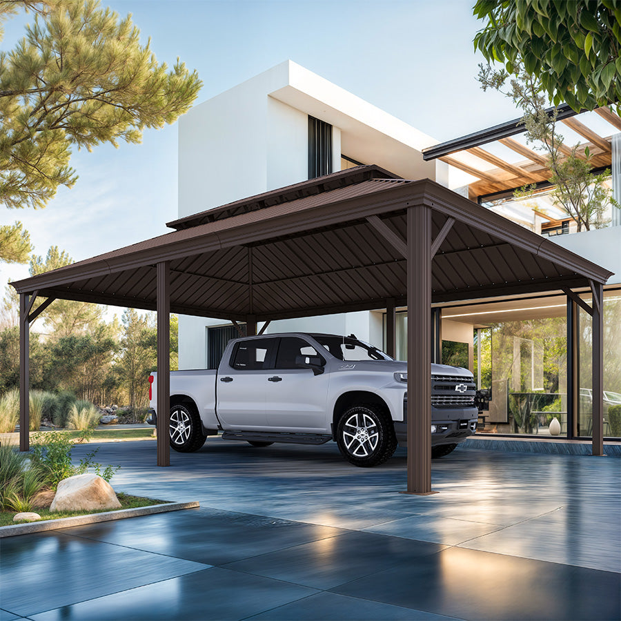 PURPLE LEAF Outdoor Carport is the ideal solution for protecting your vehicles and enhancing your outdoor space. Featuring a durable hardtop roof and reinforced aluminum frame, it offers reliable protection from harsh sunlight, heavy rain, and snow all year round.