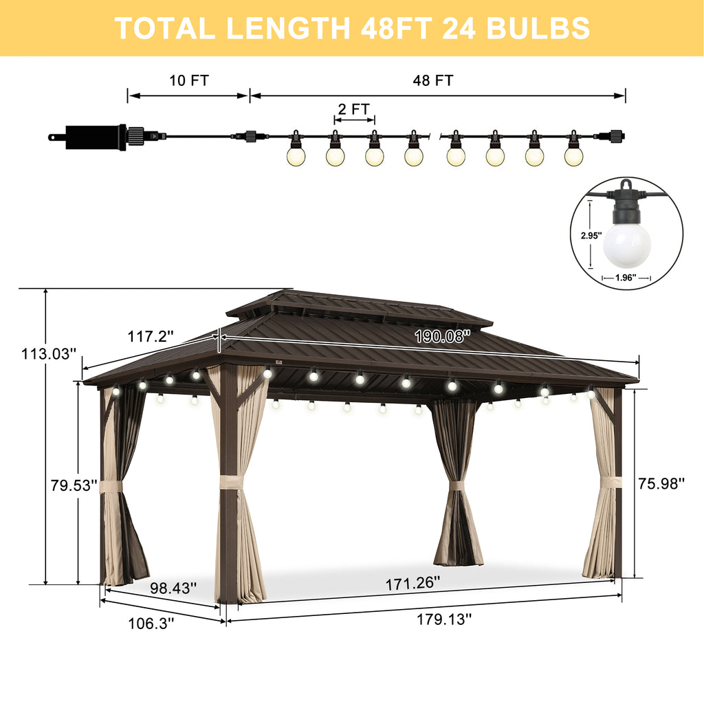 PURPLE LEAF Outdoor Hardtop Gazebo Bronze Metal Frame Galvanized Steel Double Roof with Lights-milky