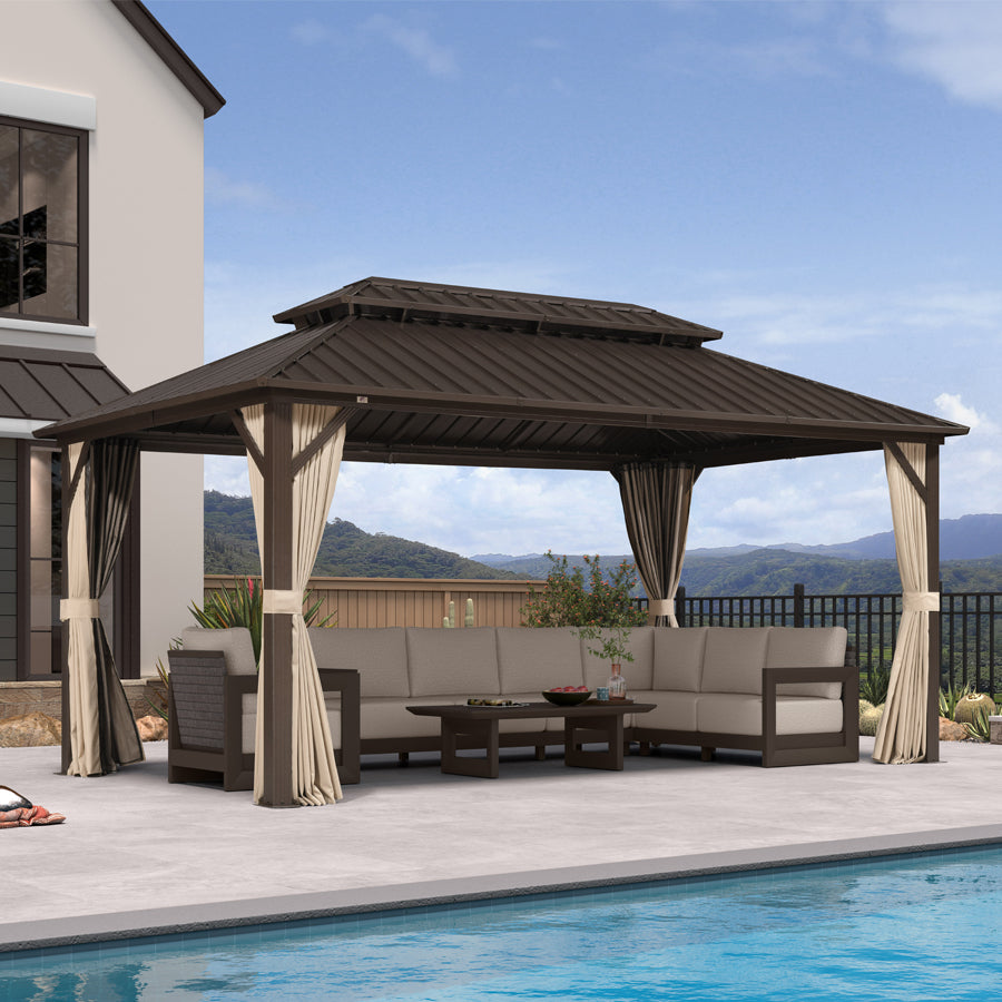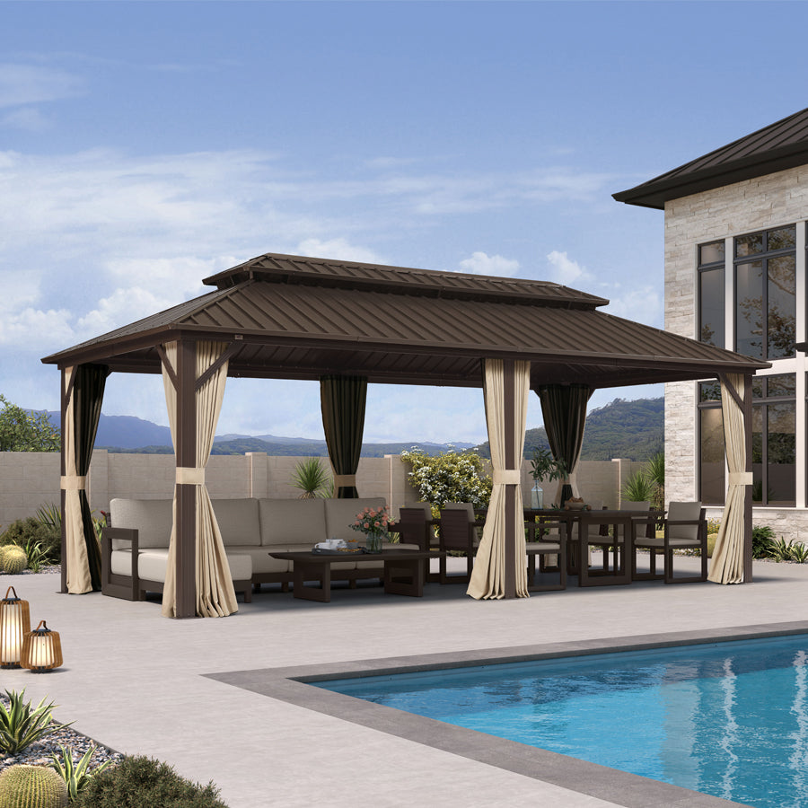 - [ Sturdy Aluminum Frame ] The hardtop gazebo is supported by a powder-coated aluminum frame that provides excellent strength and durability, ensuring that the gazebo can be used outdoors for a long time.