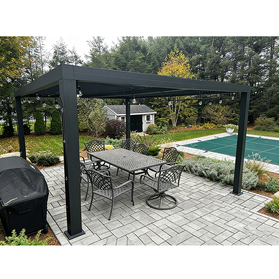 · Hidden Drainage System: Effortlessly manage water accumulation with the hidden drainage of this aluminum pergola. Designed to efficiently and invisibly whisk water away, this innovative system prevents pooling and ensures a clean and dry environment for your outdoor space.