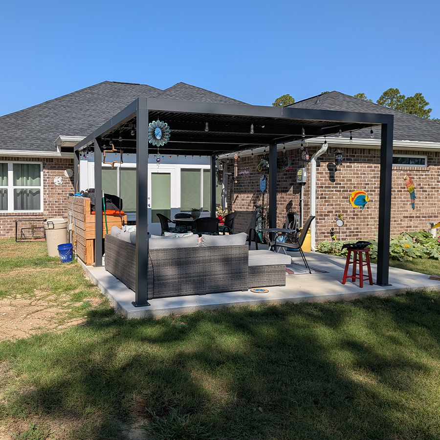· Independent Adjustable Roof: With two rows of individually controlled louvered roofs, you can enjoy up to 120-310 square feet of shade while still being able to bask in the sun or gaze at the stars with this patio pergola.
