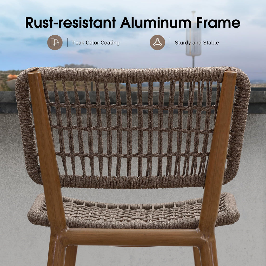 PURPLE LEAF Patio Counter Height Bar Stools Set of 2 Metal Bar Chairs with Back Wicker Woven Stools for Kitchen Island Pool Garden Outdoor Barstools