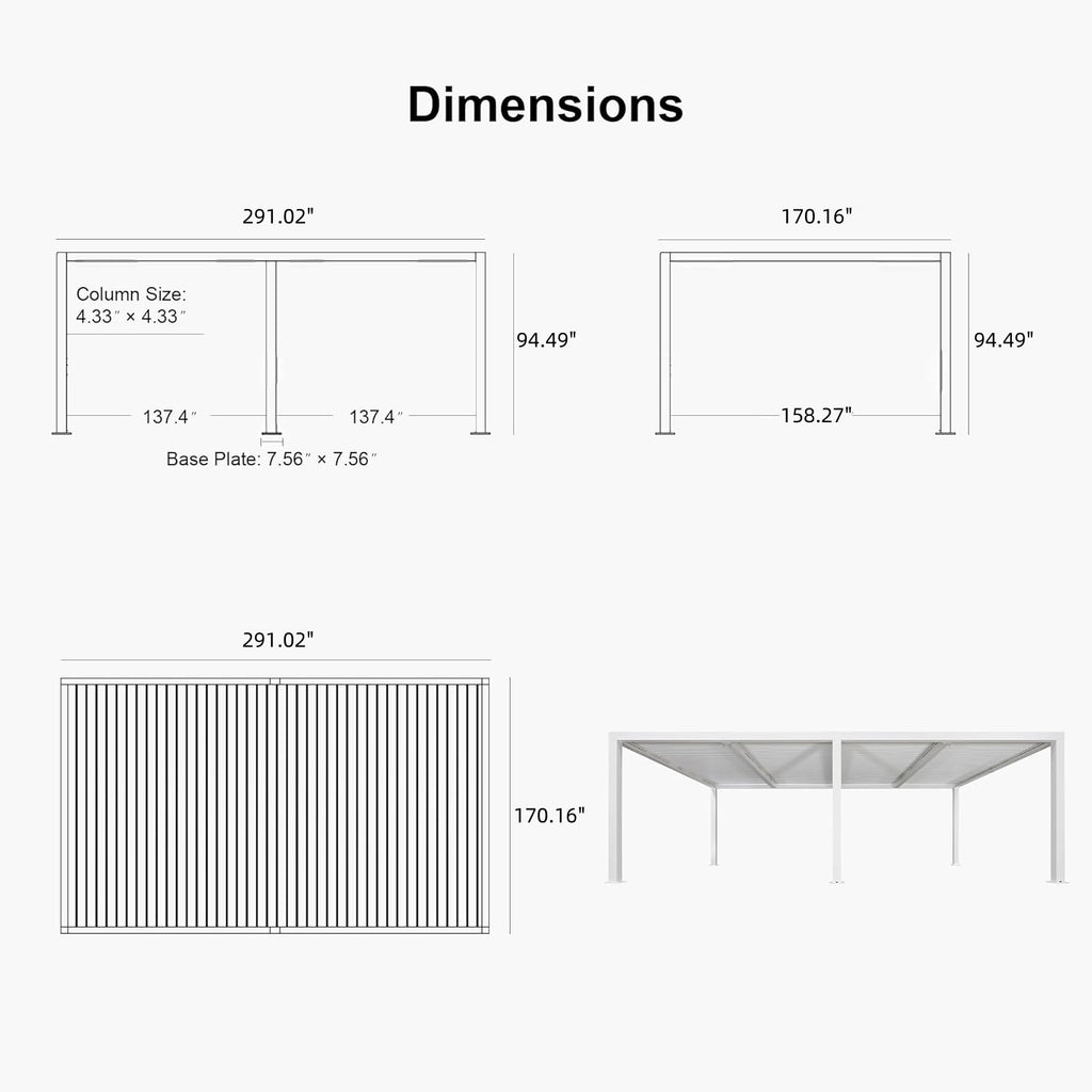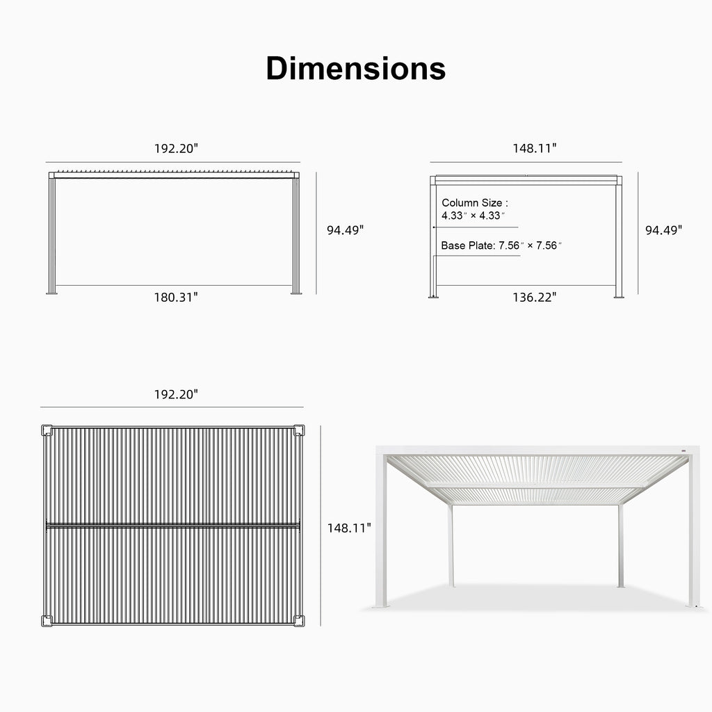 💜 Noted: In the case of high winds, snow or other extreme weather conditions, please open the louvers and raise or remove any shade screen accessories that have been installed to avoid potential damage to your pergola.