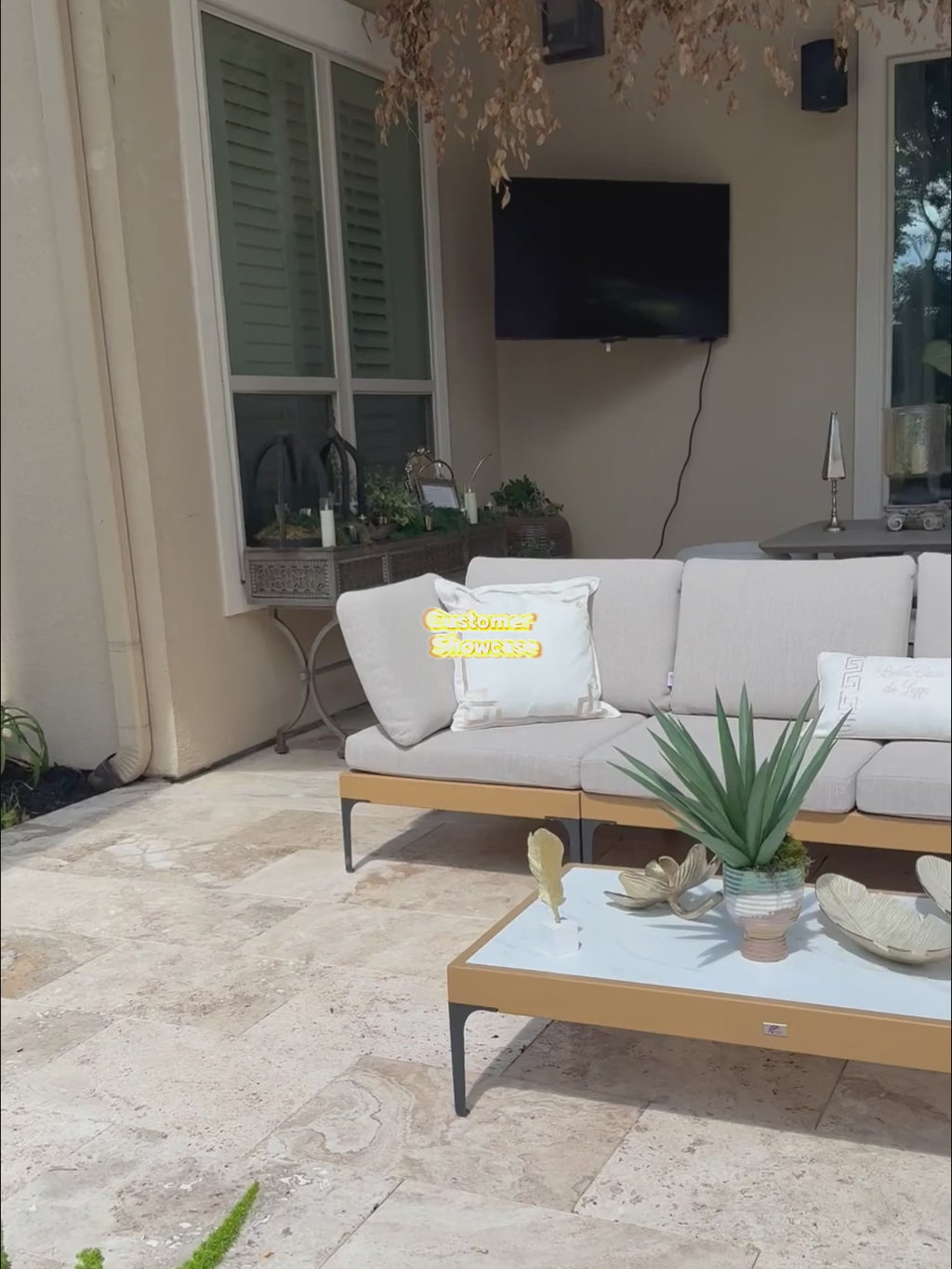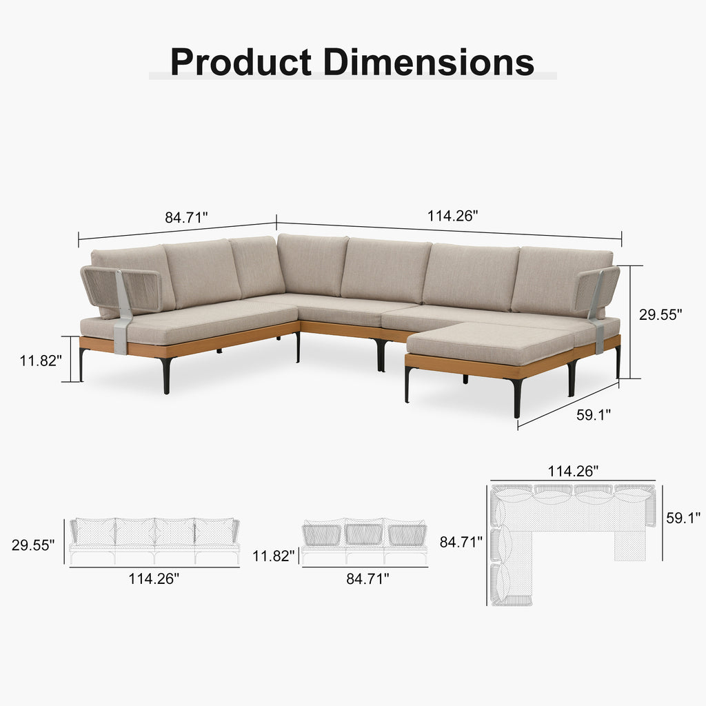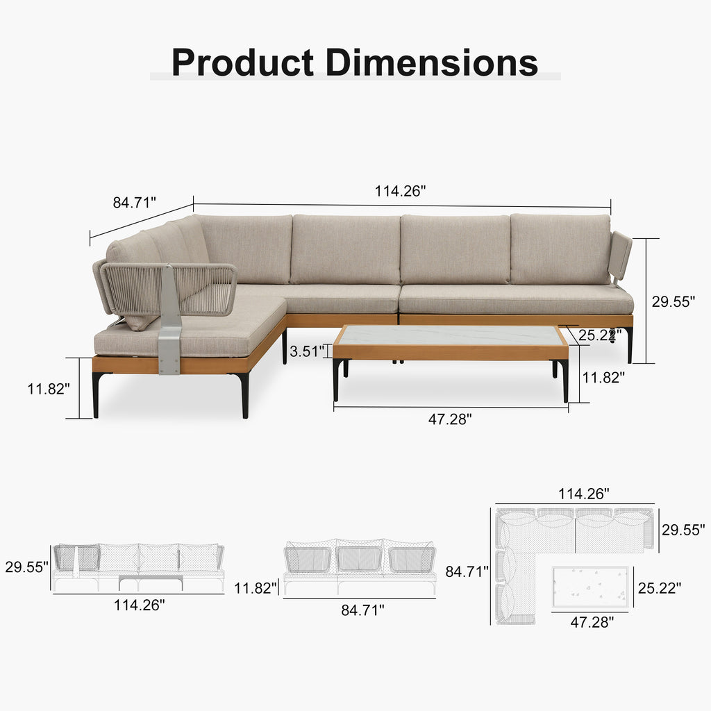 - [ Sturdy Wood-Finish Aluminum Frame ] BCrafted from wood-look coated aluminum, the frame is durable, rust-resistant, and stable—offering the natural look of wood without the upkeep. Zero maintenance required, it stays looking new for years, even in harsh conditions.