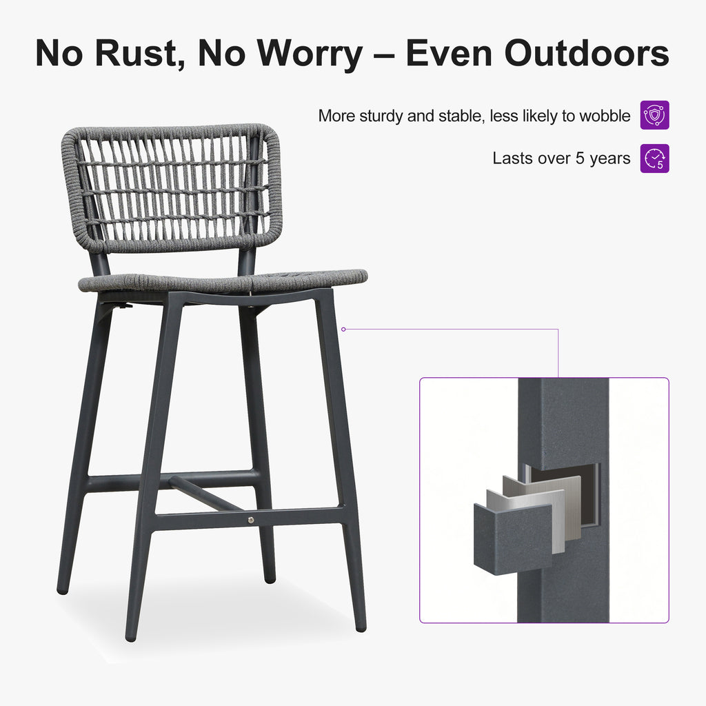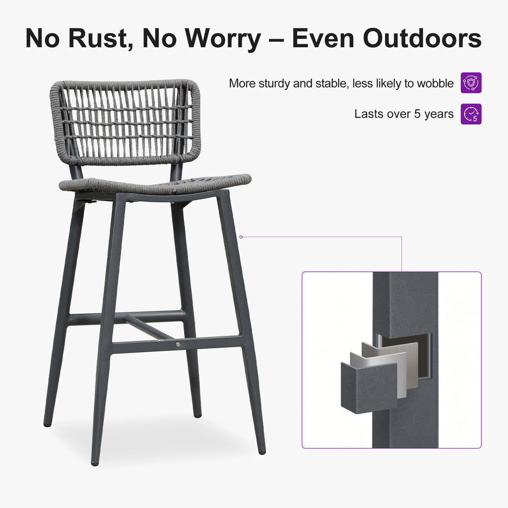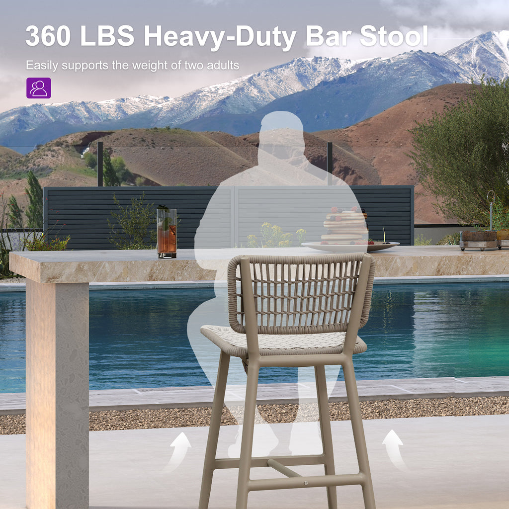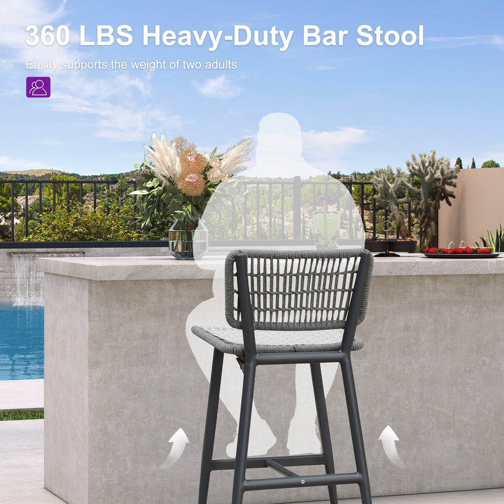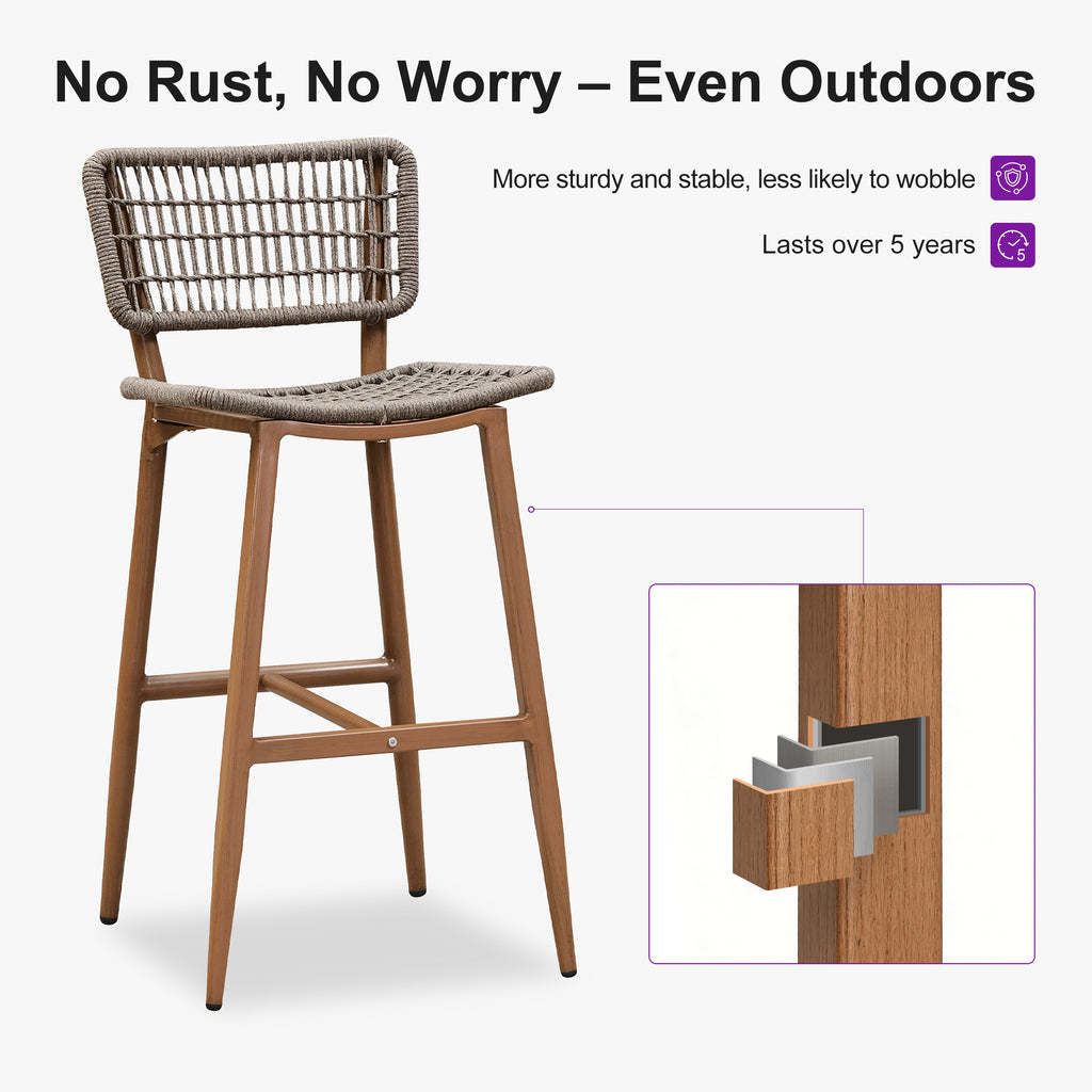 PURPLE LEAF Patio Counter Height Bar Stools Set of 2 Metal Bar Chairs with Back Wicker Woven Stools for Kitchen Island Pool Garden Outdoor Barstools