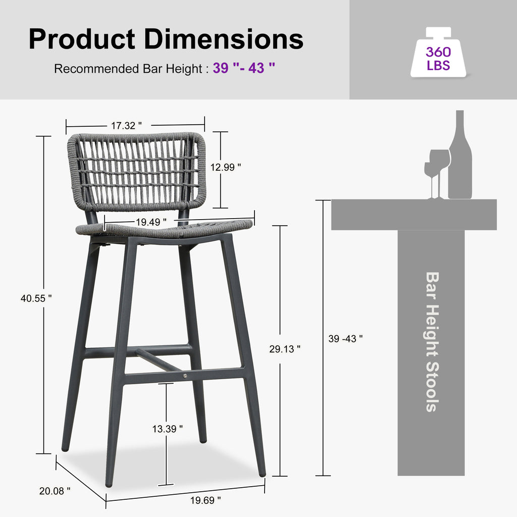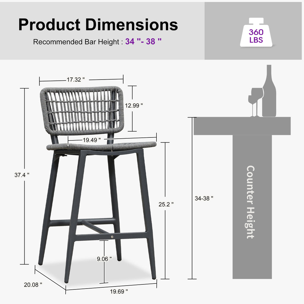 [ Product Size ] Counter stool: (19.69"D x 20.08"W x 37.4"H), 25.2" height seat is suitable for a 34" - 38" height counter. Height bar stools: (19.69" D x 20.08"W x40.55"H), 29.13" seat height is suitable for 39" - 43" height bar table, and the load capacity is 400 pounds.