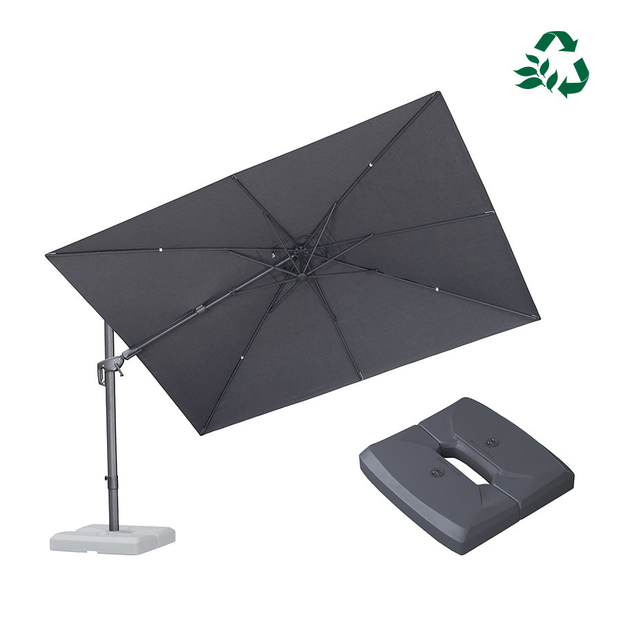 ● Warmly Note: The cantilever umbrella includes a weighted base.We recommend filling the base with at least 50% water and 50% sand.