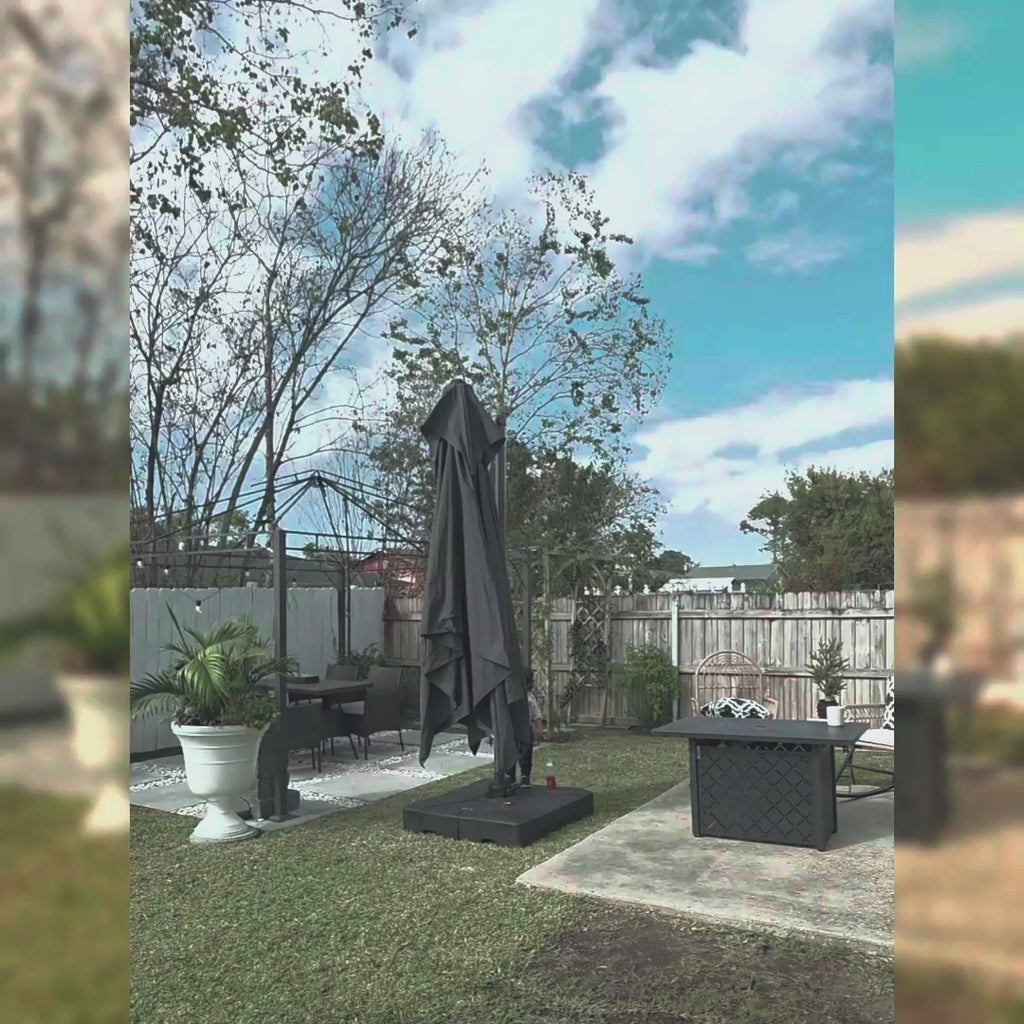 ● Sturdy and Durable: This cantilever umbrella uses a sturdy all-aluminum frame and 8 heavy-duty reinforcing ribs to provide stronger support. And the anti-oxidation spray paint helps ensure that the umbrella remains stable in all conditions, making the service life of the umbrella longer!