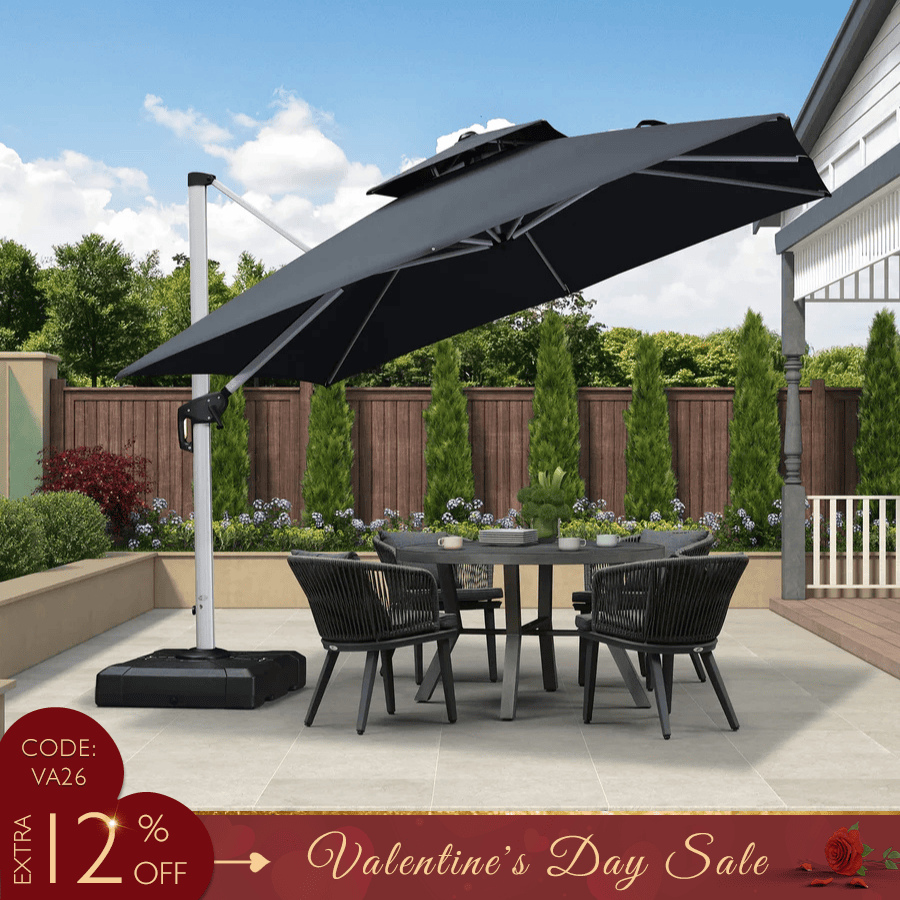 Discover the perfect fusion of style and utility with the PURPLE LEAF Double Top Cantilever Umbrella, designed to transform any outdoor space into a sunny retreat. Our elegantly crafted umbrella features a dual canopy system for superior shade and a cantilever design that eliminates the need for a central pole, providing clear visibility and plenty of unobstructed seating space.