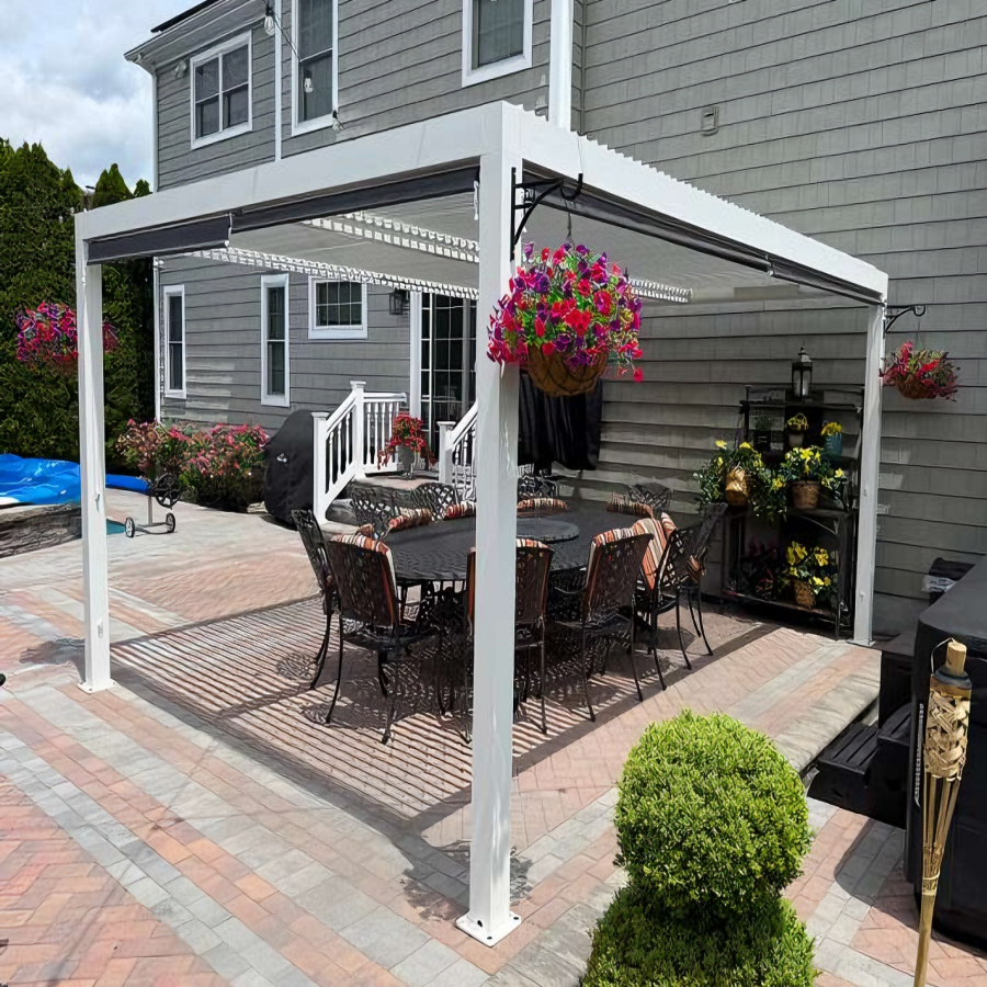 2 Independent Adjustable Hardtop: White Pergola features 0° - 90° rotation, you can get sun shade or sunbathe.