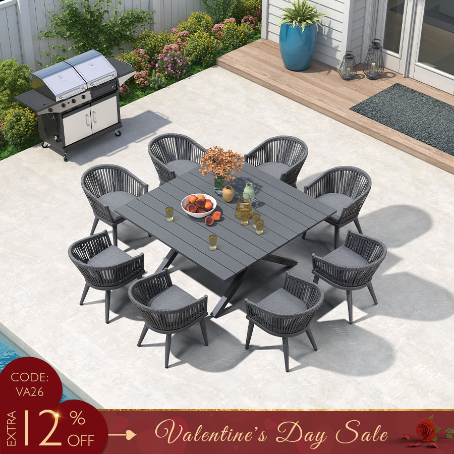 PURPLE LEAF 7/9/11 Pieces Outdoor Dining Set with Aluminium Patio Furniture Table and Rattan Chairs Sets for Deck, Backyard and Indoor, Grey