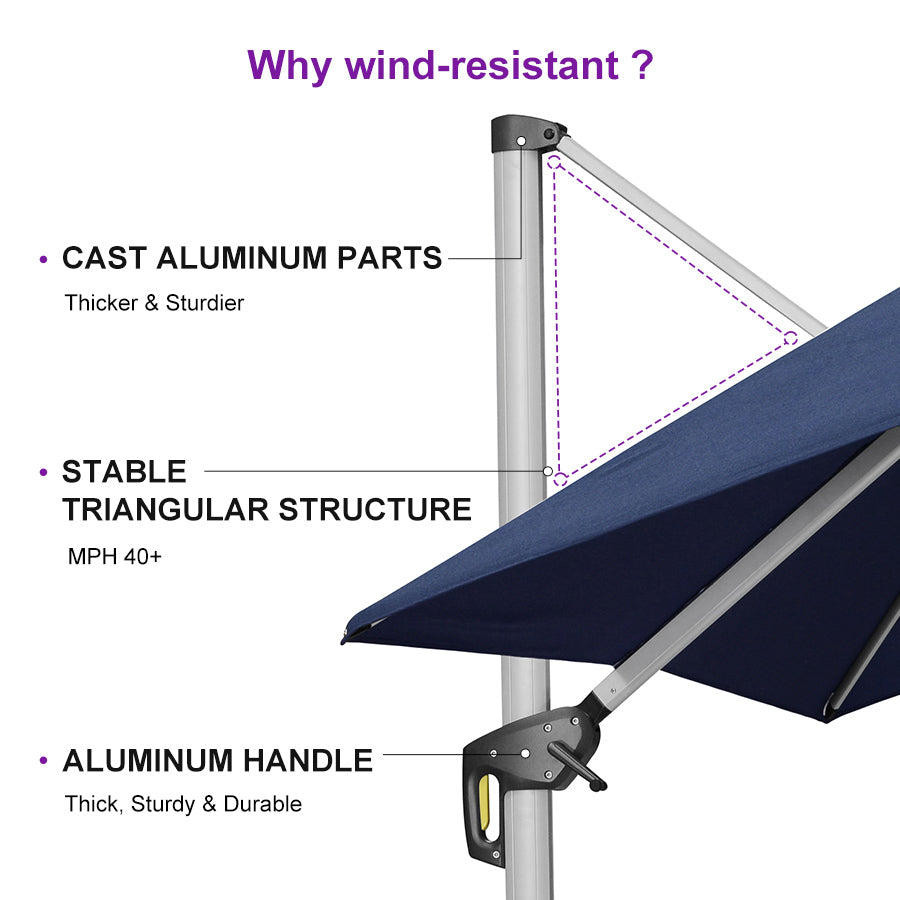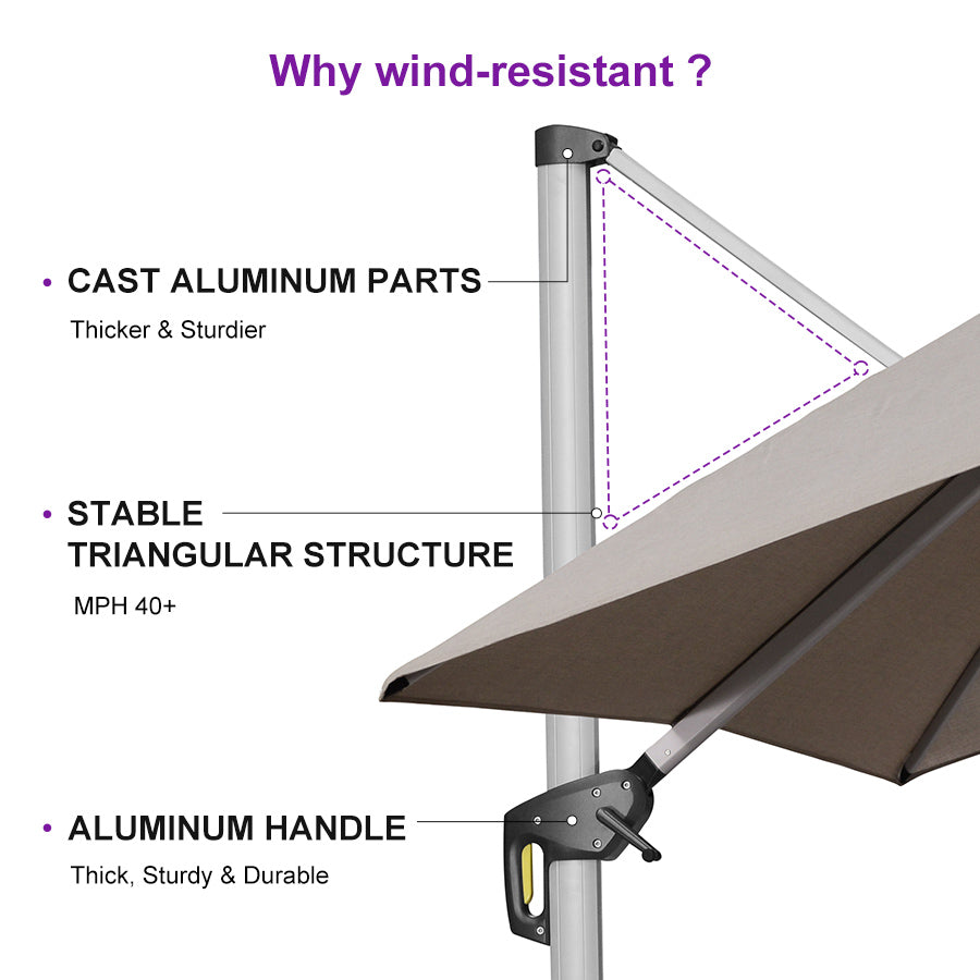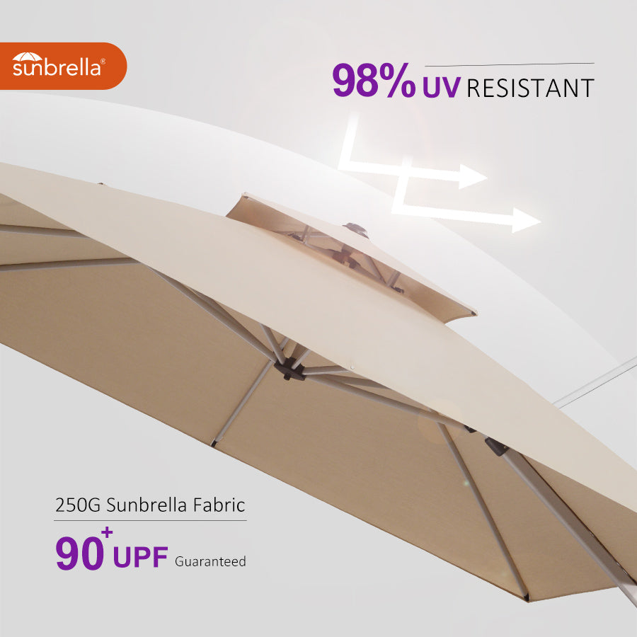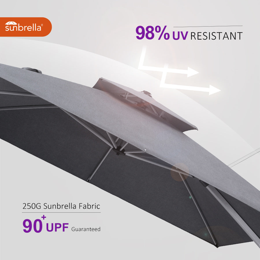 ●Luxurious and Easy to Assemble: Our cantilever umbrella comes with well-designed user installation instructions and all the necessary tools for easy assembly that can be installed by one person.