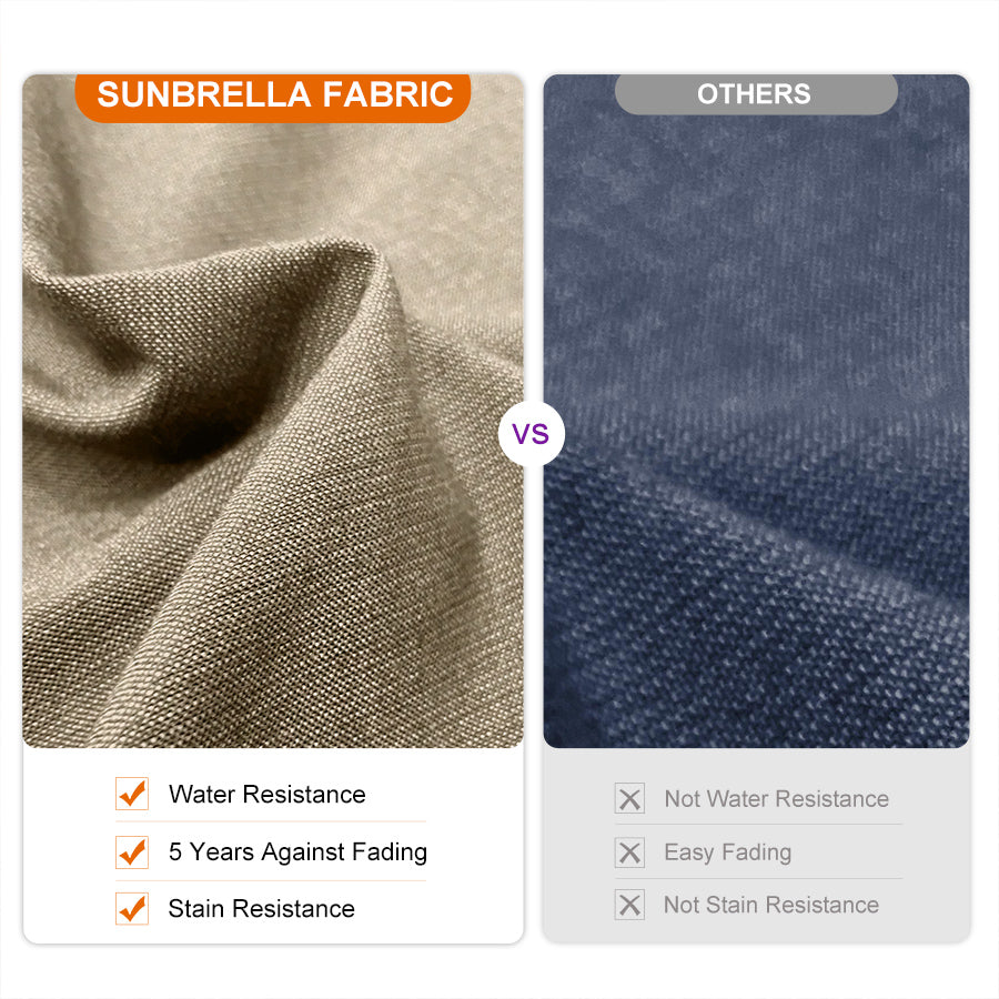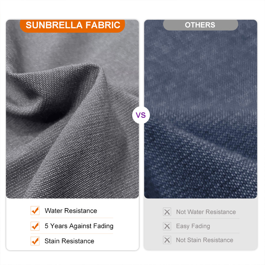 ●Upgrade Fabric: For years, no other fabric has lasted longer than Sunbrella®. High-quality, 100% SUNBRELLA fabric is UV-resistant, water-repellent and colorfast for 8 years. Available in a variety of stripes, solids and textures, it's the perfect fabric for furniture.
