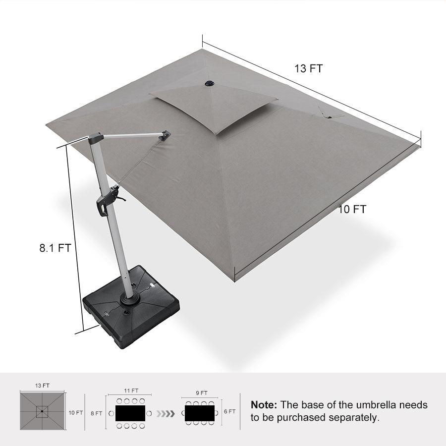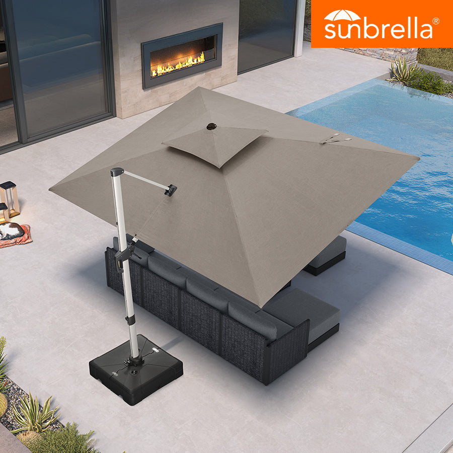 Discover the perfect fusion of style and utility with the PURPLE LEAF Double Top Cantilever Umbrella, designed to transform any outdoor space into a sunny retreat. Our elegantly crafted umbrella features a dual canopy system for superior shade and a cantilever design that eliminates the need for a central pole, providing clear visibility and plenty of unobstructed seating space.