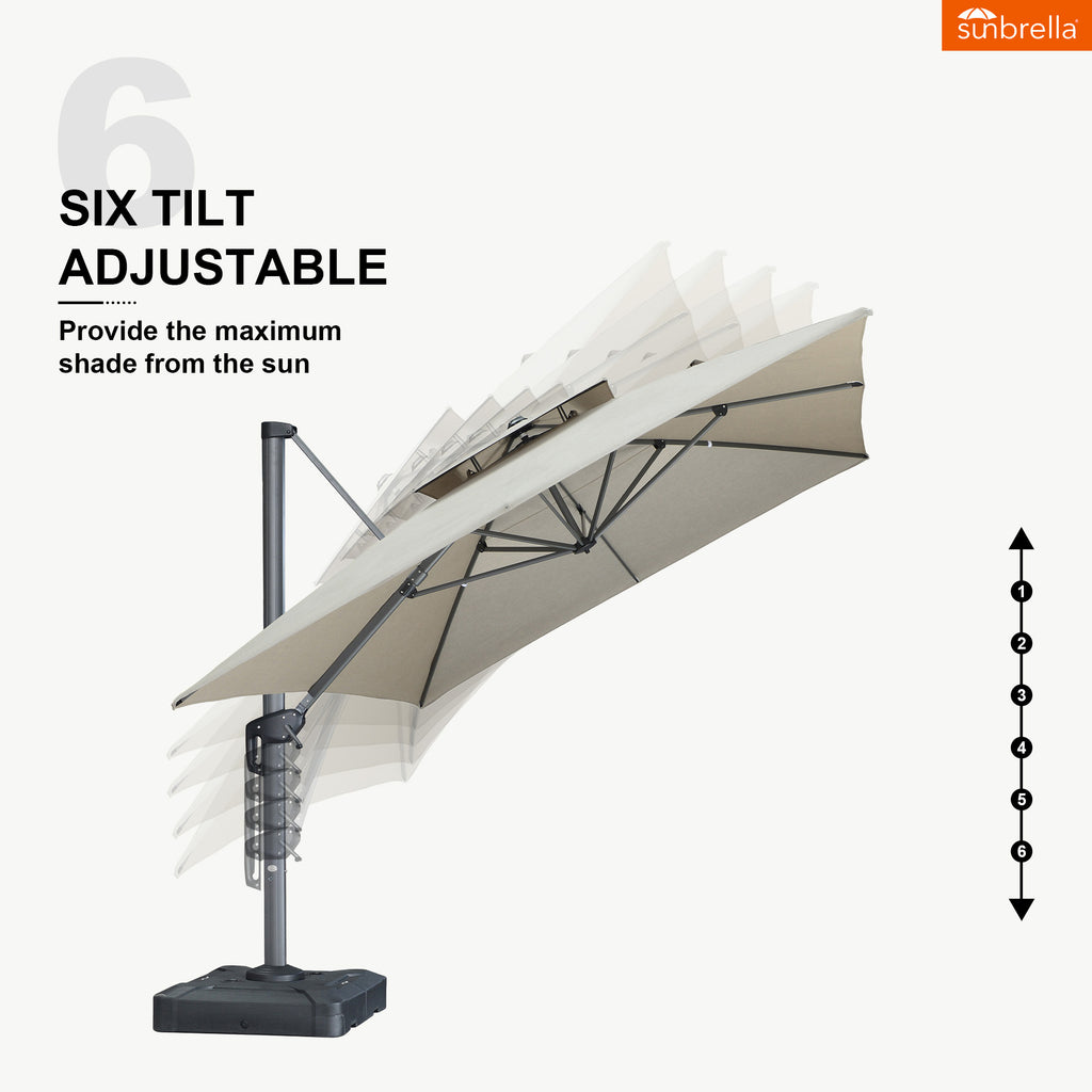 ● Luxurious and Easy to Assemble: Our cantilever umbrella comes with well-designed user installation instructions and all the necessary tools for easy assembly that can be installed by one person.