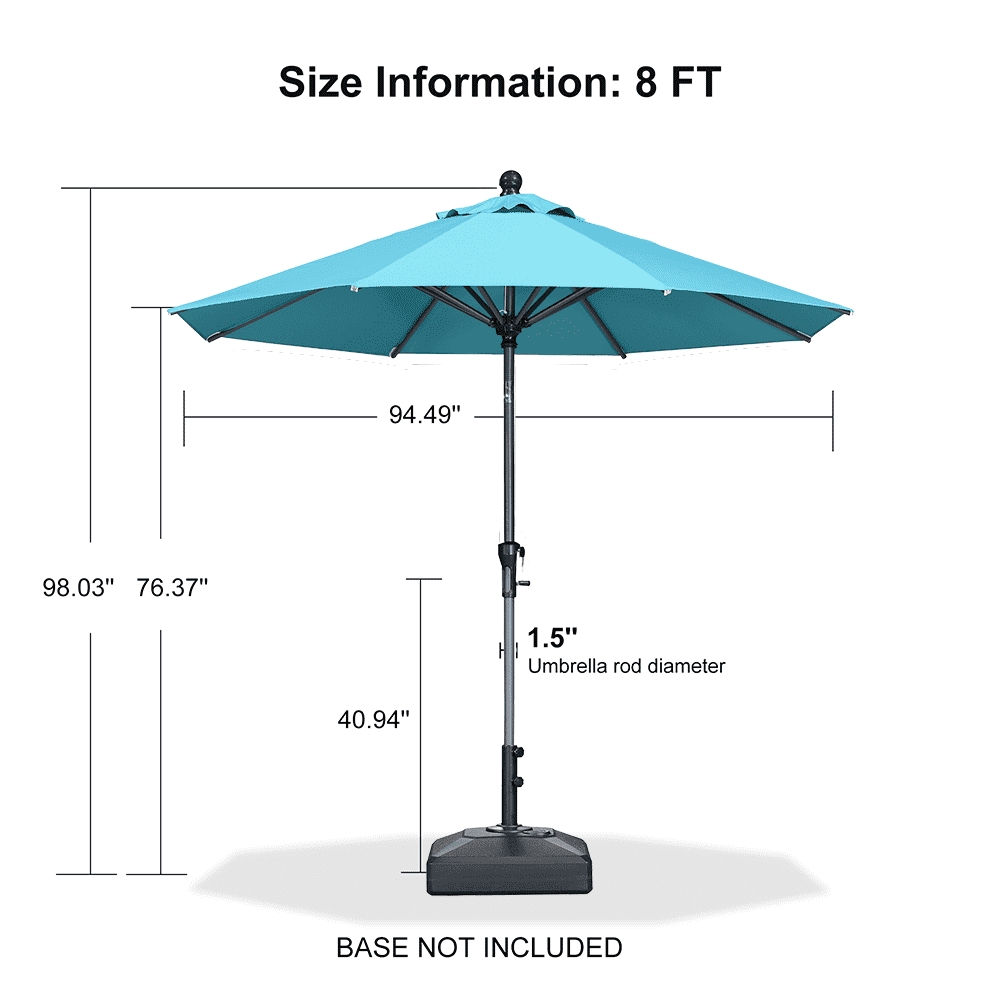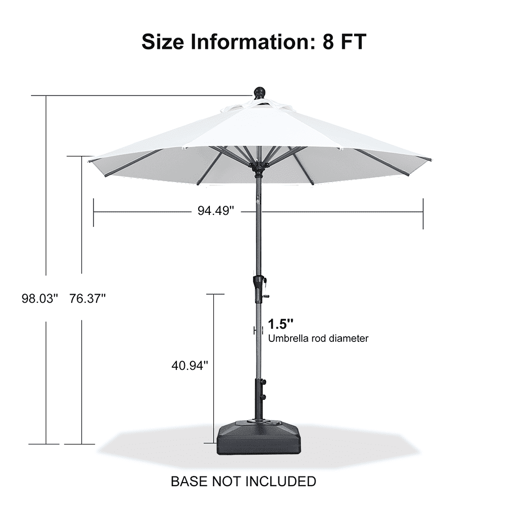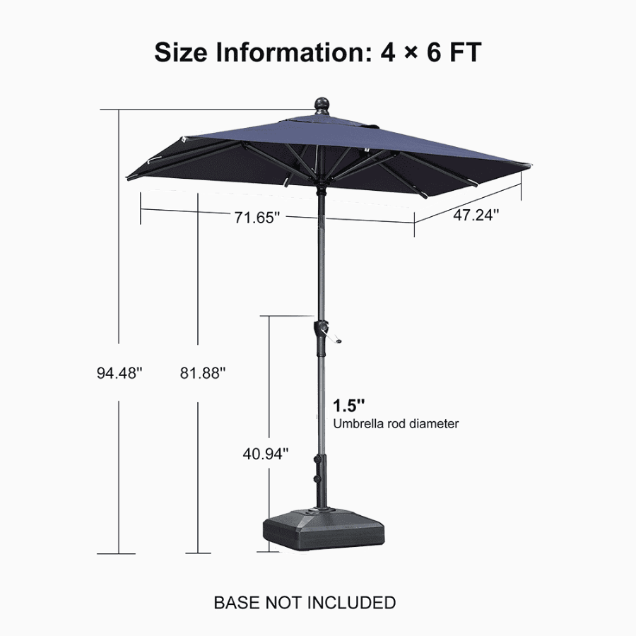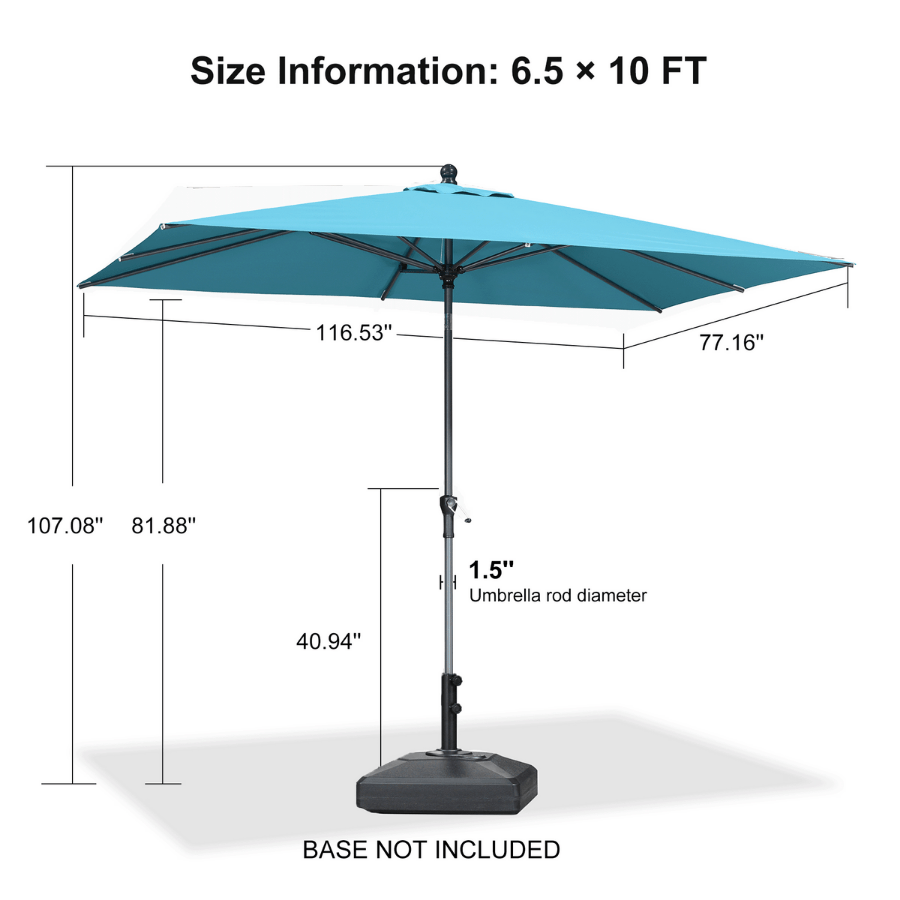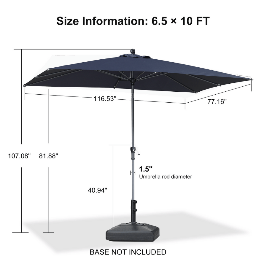 💜 Noted: Weighted base in the picture is NOT included,please click to shop market umbrella base: ZY03BASE-14, or 10' round, 6.5'X10'umbrella base:ZY03-MLBASE-45, 8'Round, 9'Round, 6'X6', 7'X7', 8'X8', 4'X6', 6'X9'umbrella base:ZY03-MLBASE-32, (When using this base, the umbrella needs to be inserted in the center of the dining table). You can insert this club umbrella into the water, underground, or use other bases.If your umbrella is not intended to be used with a dining table, please purchase a separate market umbrella base of 40 kg or more.