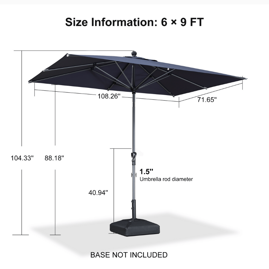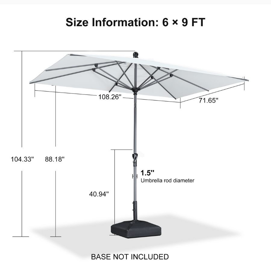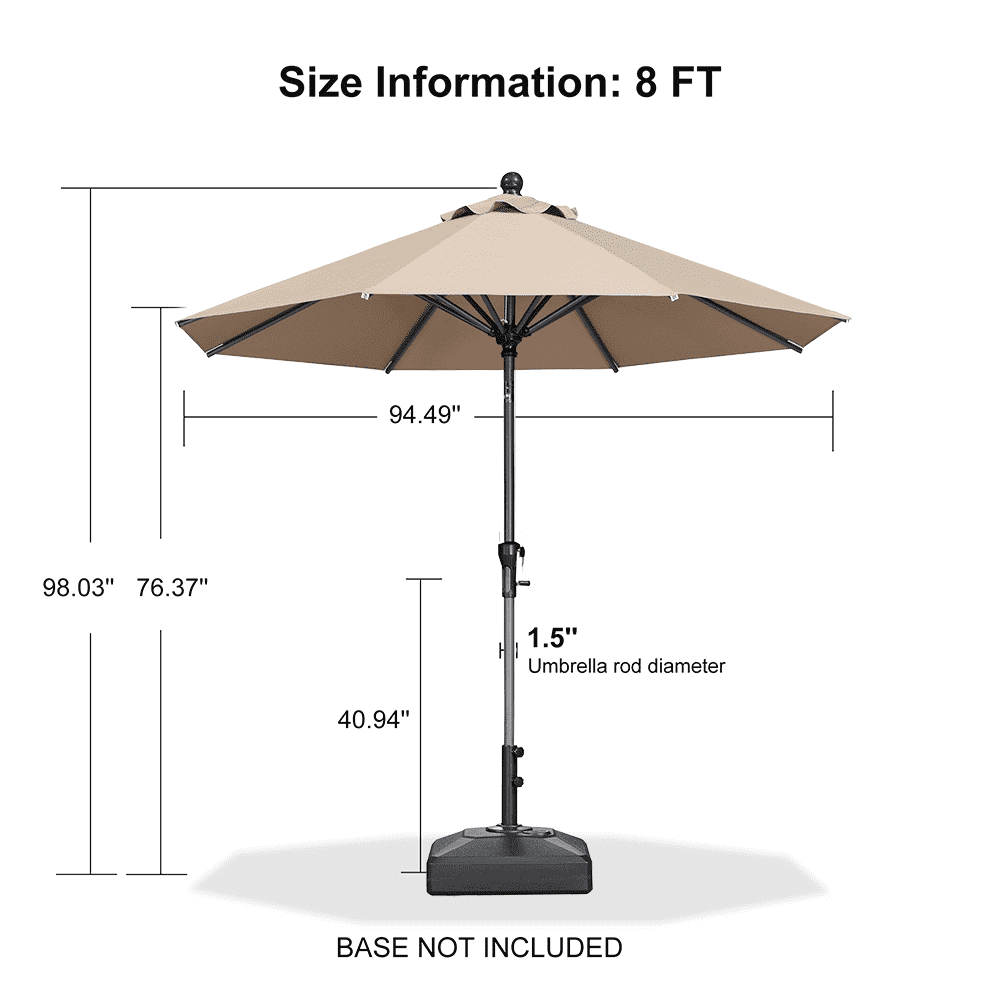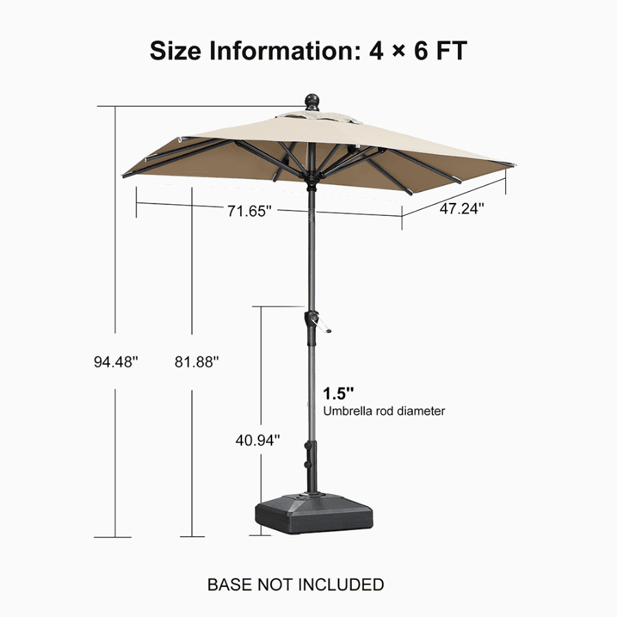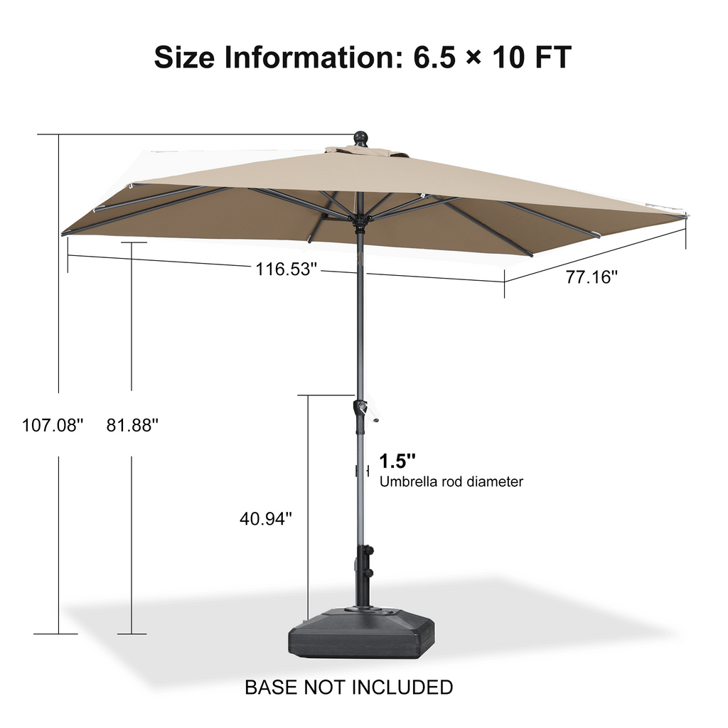 💜 Noted: Weighted base in the picture is NOT included,please click to shop market umbrella base: ZY03BASE-14, or 10' round, 6.5'X10'umbrella base:ZY03-MLBASE-45, 8'Round, 9'Round, 6'X6', 7'X7', 8'X8', 4'X6', 6'X9'umbrella base:ZY03-MLBASE-32, (When using this base, the umbrella needs to be inserted in the center of the dining table). You can insert this club umbrella into the water, underground, or use other bases.If your umbrella is not intended to be used with a dining table, please purchase a separate market umbrella base of 40 kg or more.