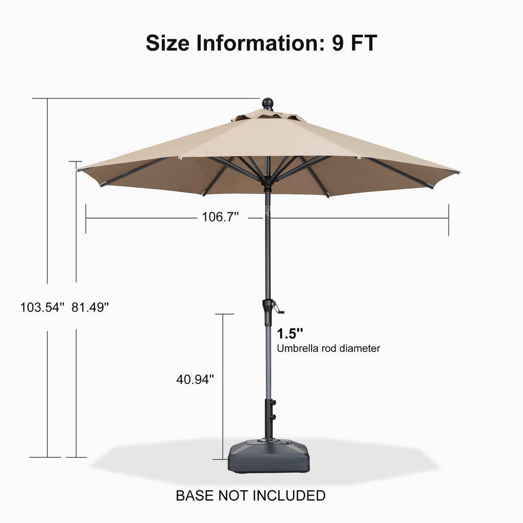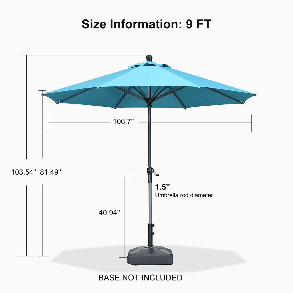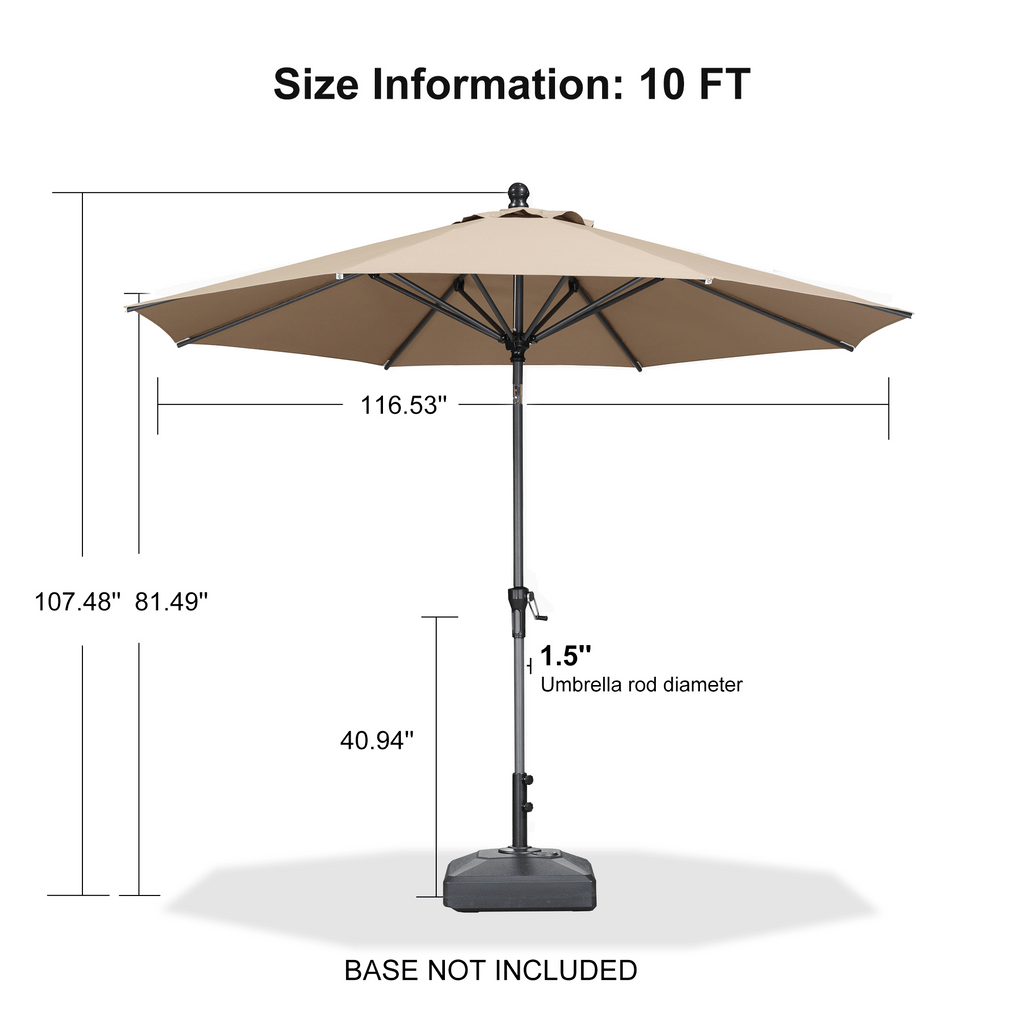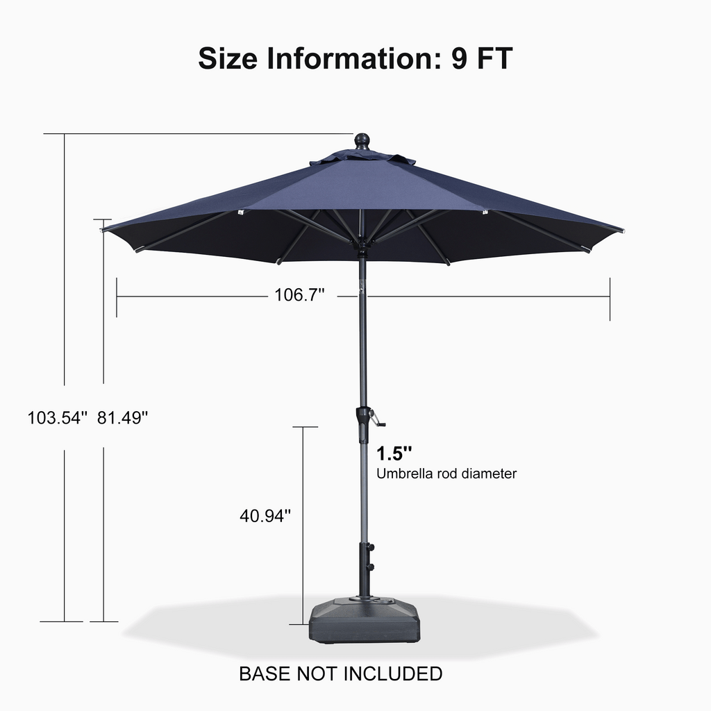 💜 Noted: Weighted base in the picture is NOT included,please click to shop market umbrella base: ZY03BASE-14, or 10' round, 6.5'X10'umbrella base:ZY03-MLBASE-45, 8'Round, 9'Round, 6'X6', 7'X7', 8'X8', 4'X6', 6'X9'umbrella base:ZY03-MLBASE-32, (When using this base, the umbrella needs to be inserted in the center of the dining table). You can insert this club umbrella into the water, underground, or use other bases.If your umbrella is not intended to be used with a dining table, please purchase a separate market umbrella base of 40 kg or more.