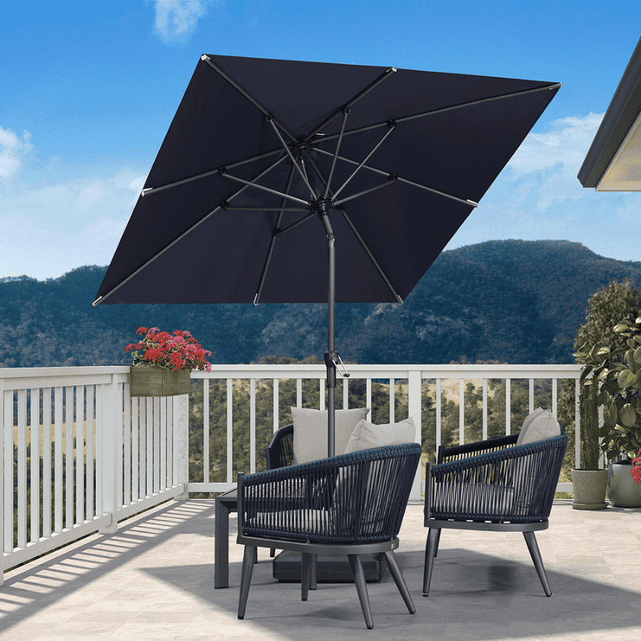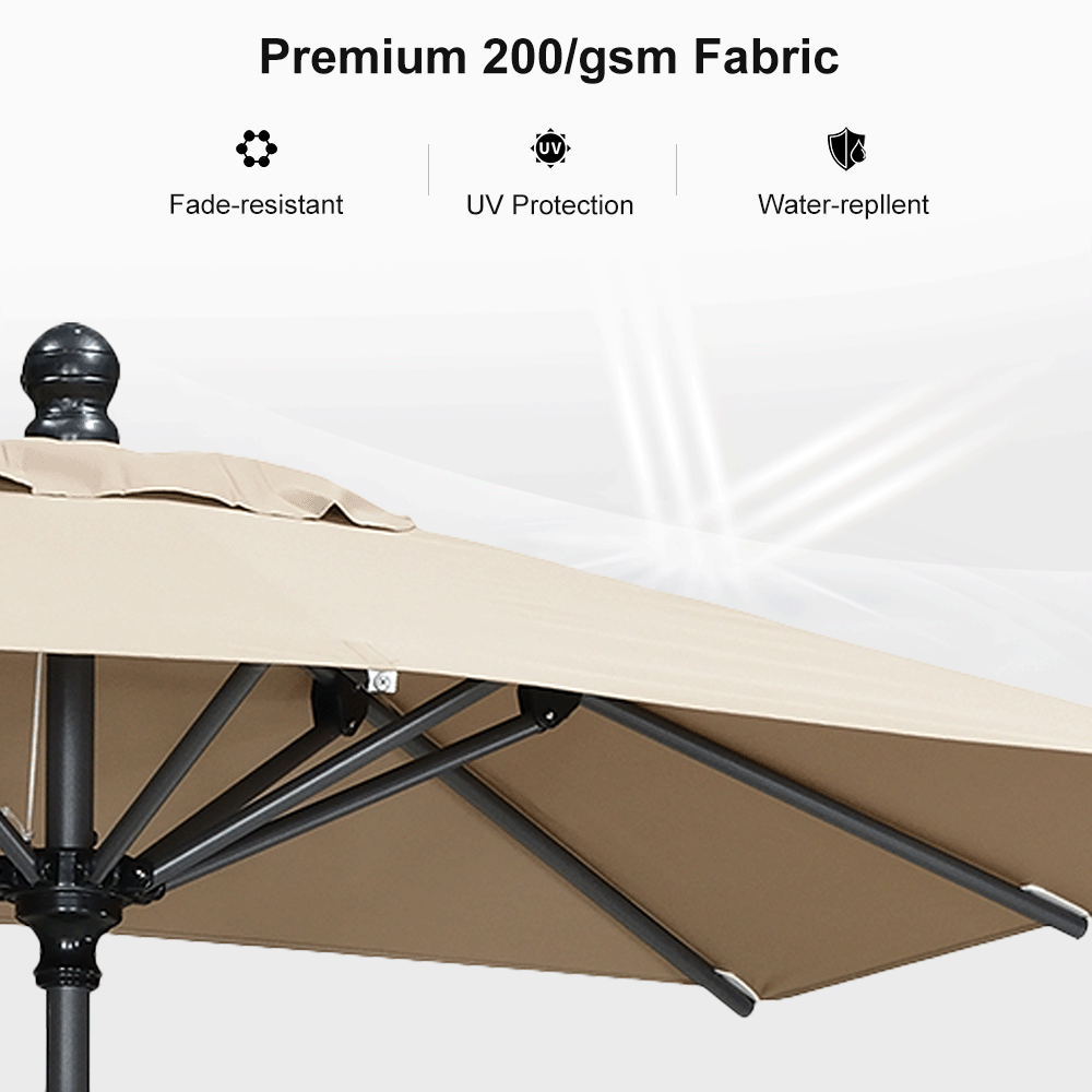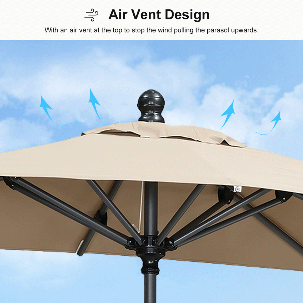 💜 Hand crank system: This market umbrella features a hand crank system with a more beautiful cut-out design for quick opening and closing of the market umbrella.