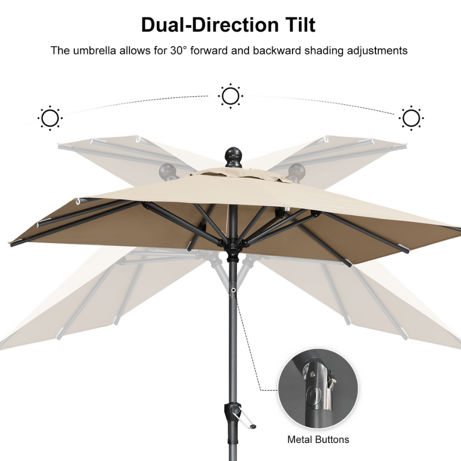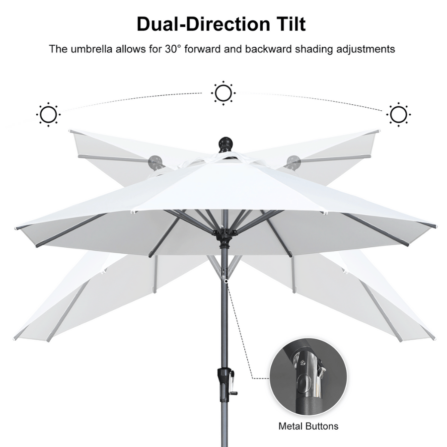 💜 Tiltable Design: With a simple tilt button, this umbrella pole allows for a 30° dual-direction tilt, so you can easily and perfectly align with the movement of the sun.
