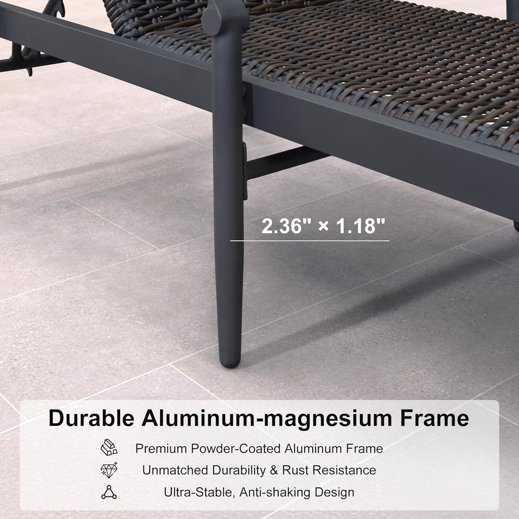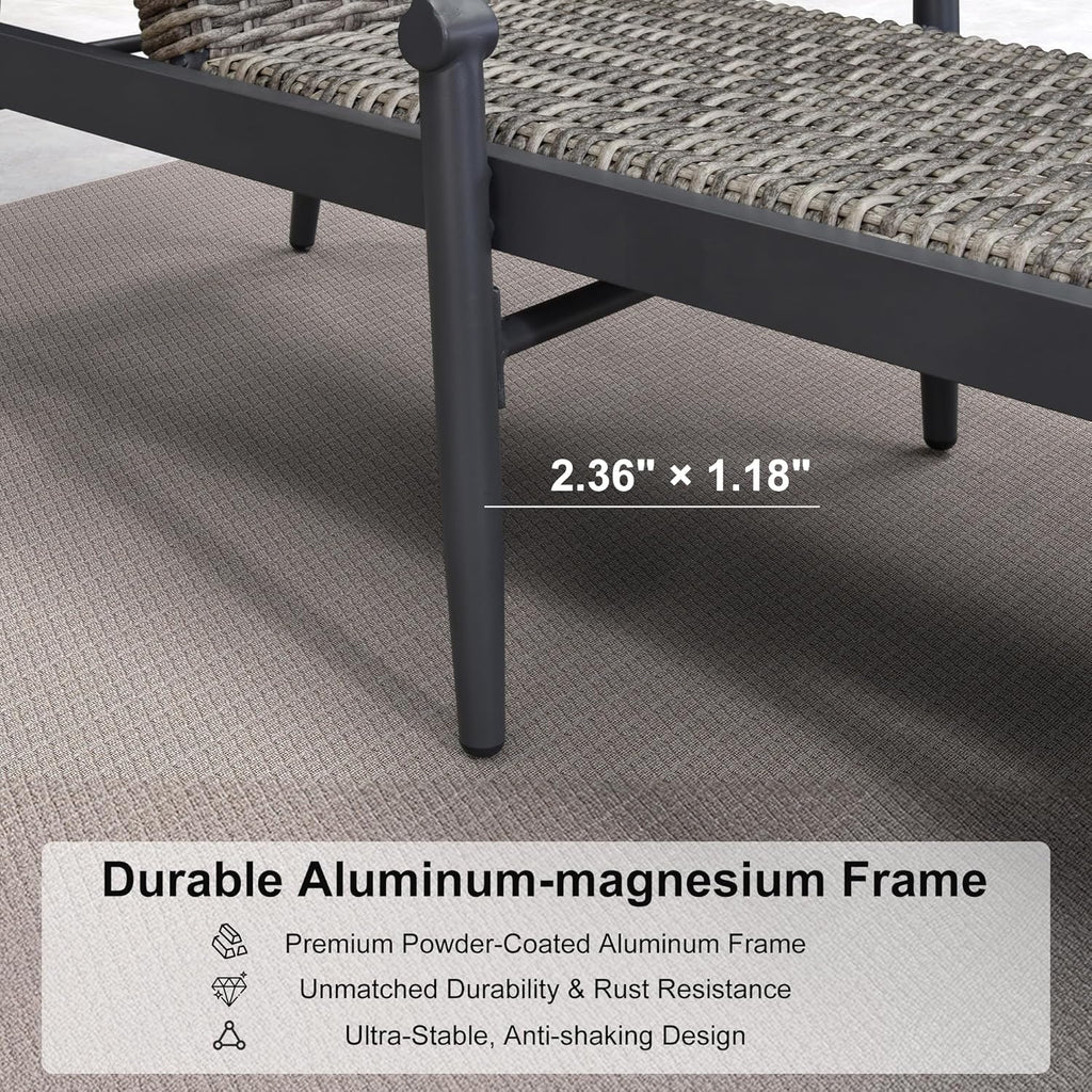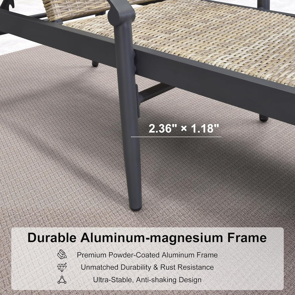 Aluminum Frame: Rust-resistant powder-coated aluminum frame is weather-resistant and has a maximum weight capacity of 639 lbs, providing stronger support than others.