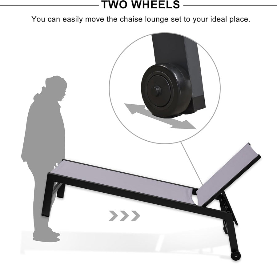 PURPLE LEAF Patio Chaise Lounge Textilene Pool with Wheels Sunbathing Chair for Outdoor, Beach, Yard, Side Table Included