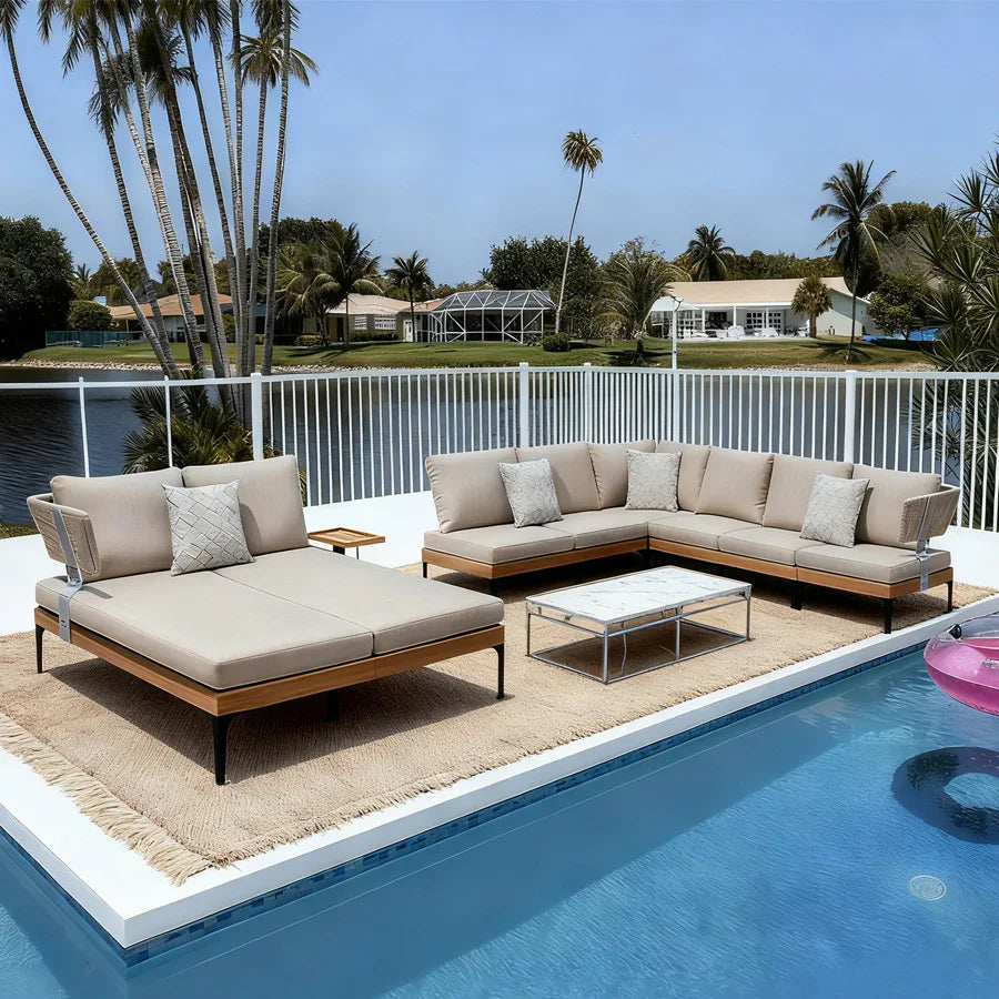 - [ Sturdy Wood-Finish Aluminum Frame ] BCrafted from wood-look coated aluminum, the frame is durable, rust-resistant, and stable—offering the natural look of wood without the upkeep. Zero maintenance required, it stays looking new for years, even in harsh conditions.