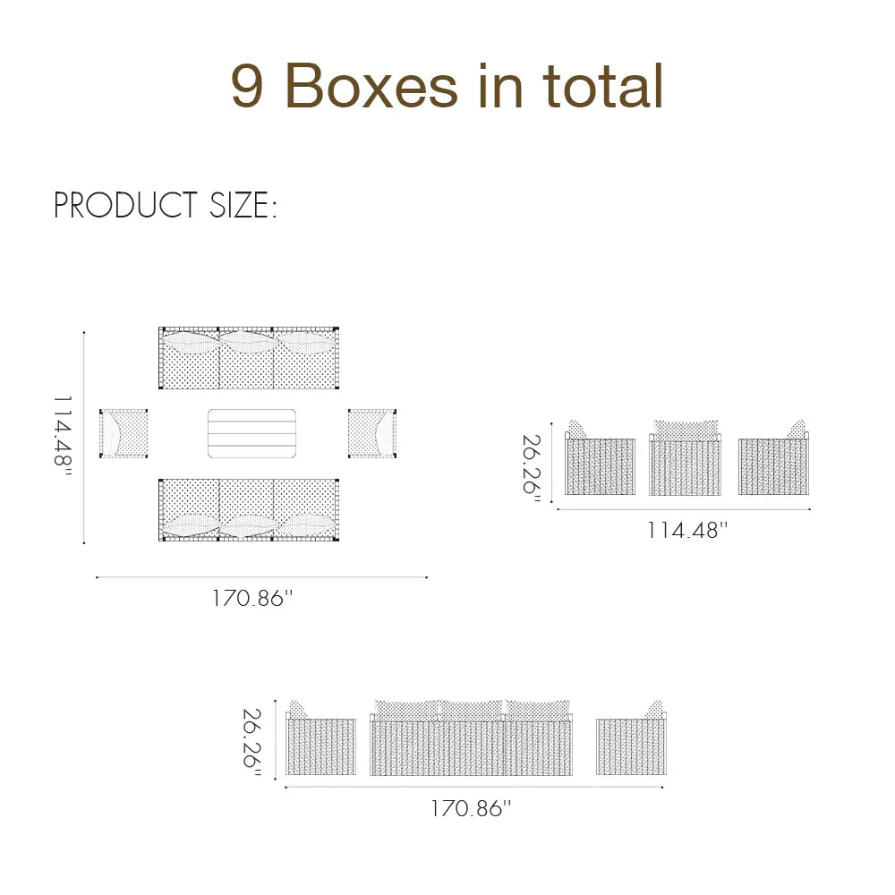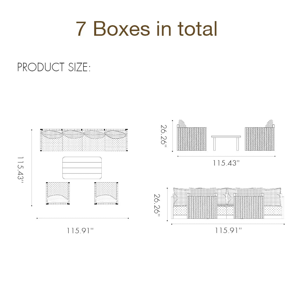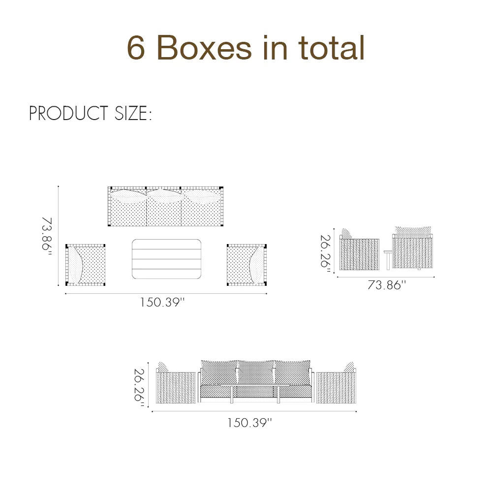 • [ Versatile Outdoor Living Set ] This modern patio conversation set is ideal for a variety of settings—poolside lounging, garden gatherings, or balcony relaxation. Its modular design allows for flexible arrangements to suit different occasions and spaces.