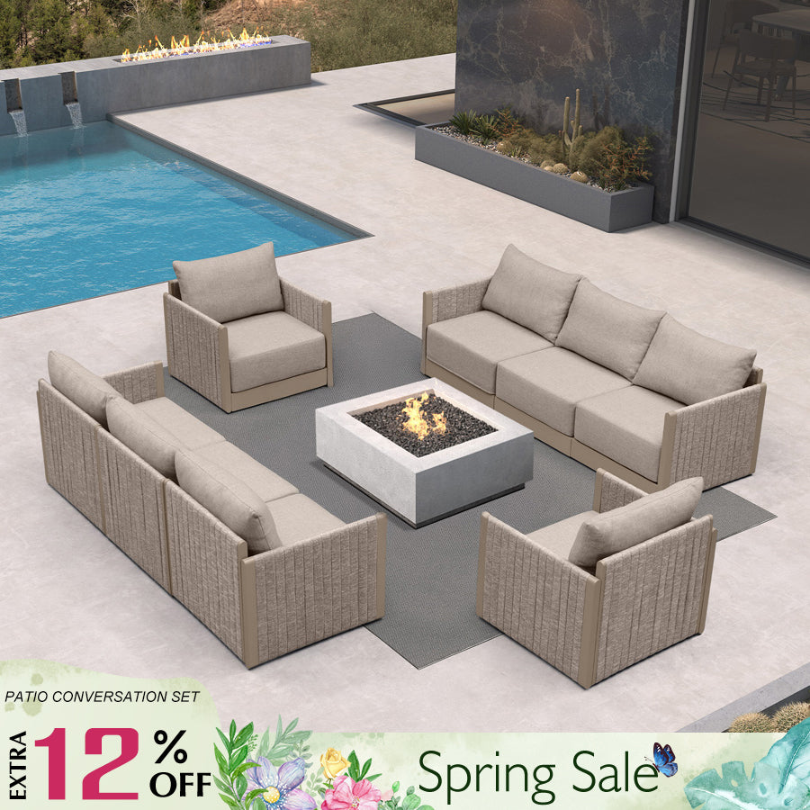 PURPLE LEAF Sanori Classical without Table Beige Patio Conversation Set with Cushions and Ottoman for Deck
