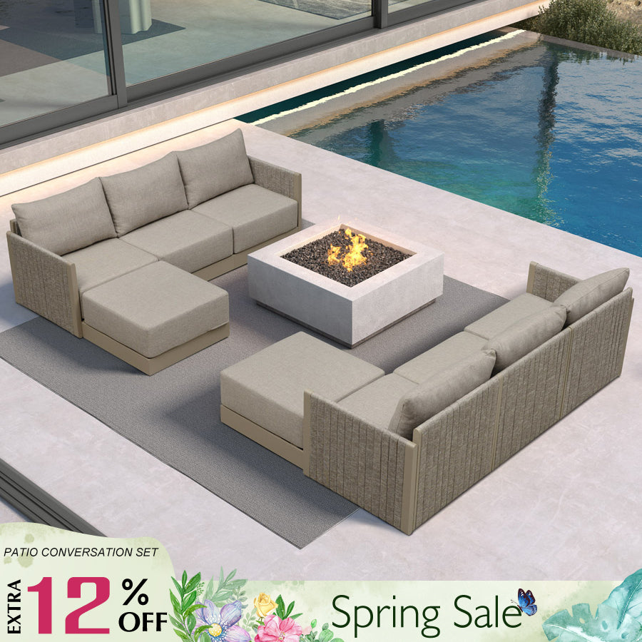 PURPLE LEAF Sanori Beige Symmetrical Outdoor Sectional Modular Design with Cushions and Ottoman for Porch