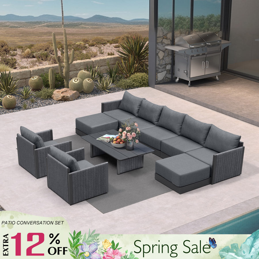 PURPLE LEAF Sanori Grey Symmetrical Outdoor Sectional Modular Design with Cushions and Ottoman for Porch