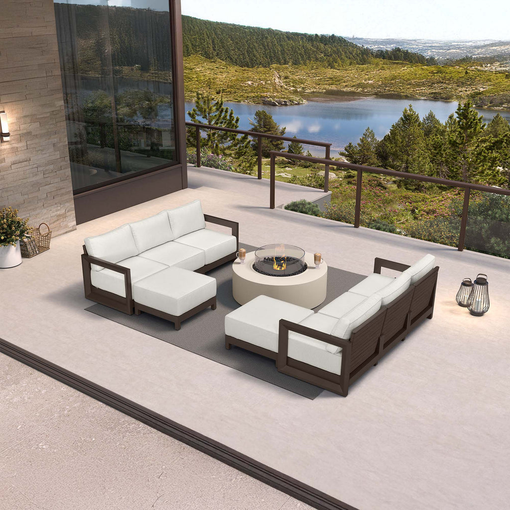 PURPLE LEAF Caesar L-shaped Patio Conversation Set with Bronze Cushion Pillows and Ottoman Couch for Backyard Porch