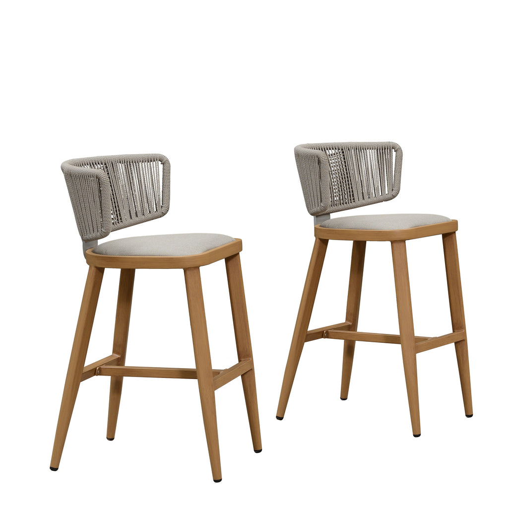 PURPLE LEAF Outdoor Bar Stool Set of 2 Modern Rattan Bar Chairs with Woven Rope Back Wicker Patio Barstools for Indoor Kitchen Garden
