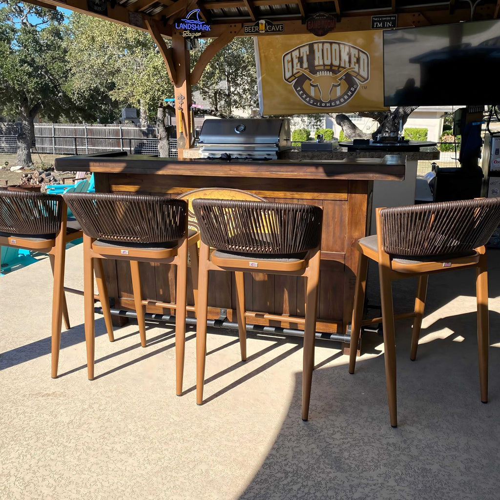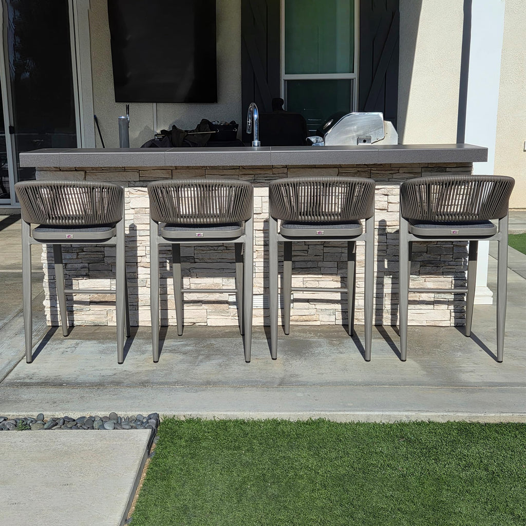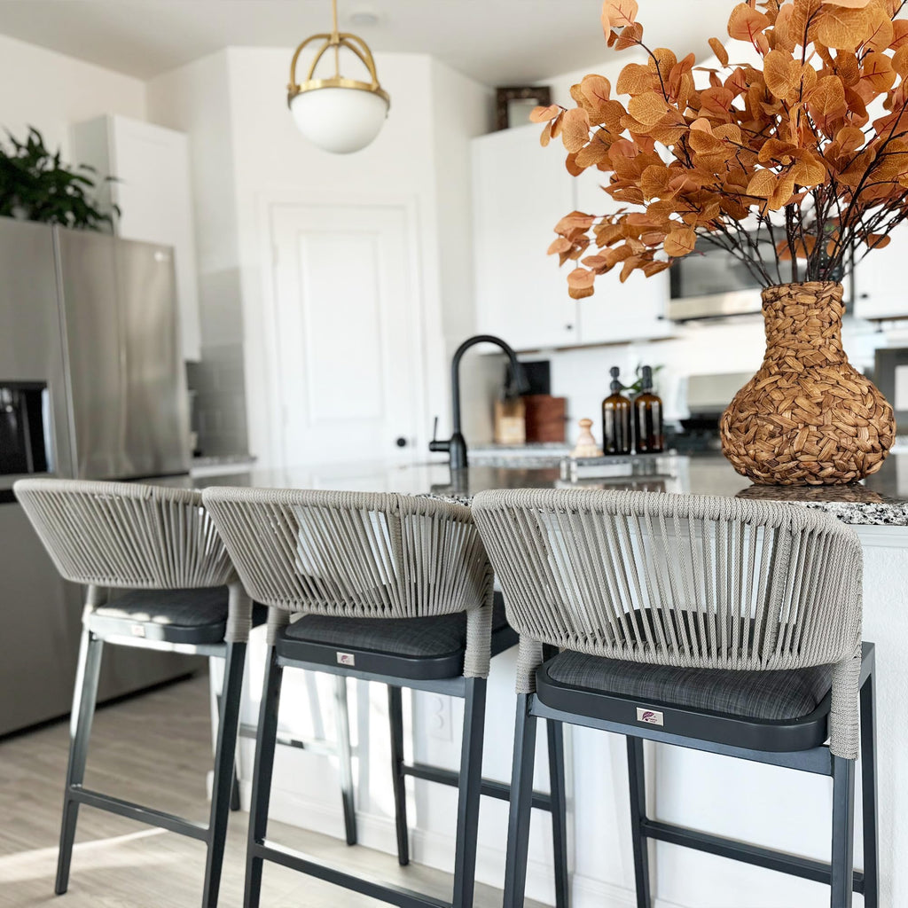 【Modern Style】 Combining a teak-finished aluminum frame with a beautiful rattan weave, this bar stool chair will be an ideal modern accessory for your outdoor space.
