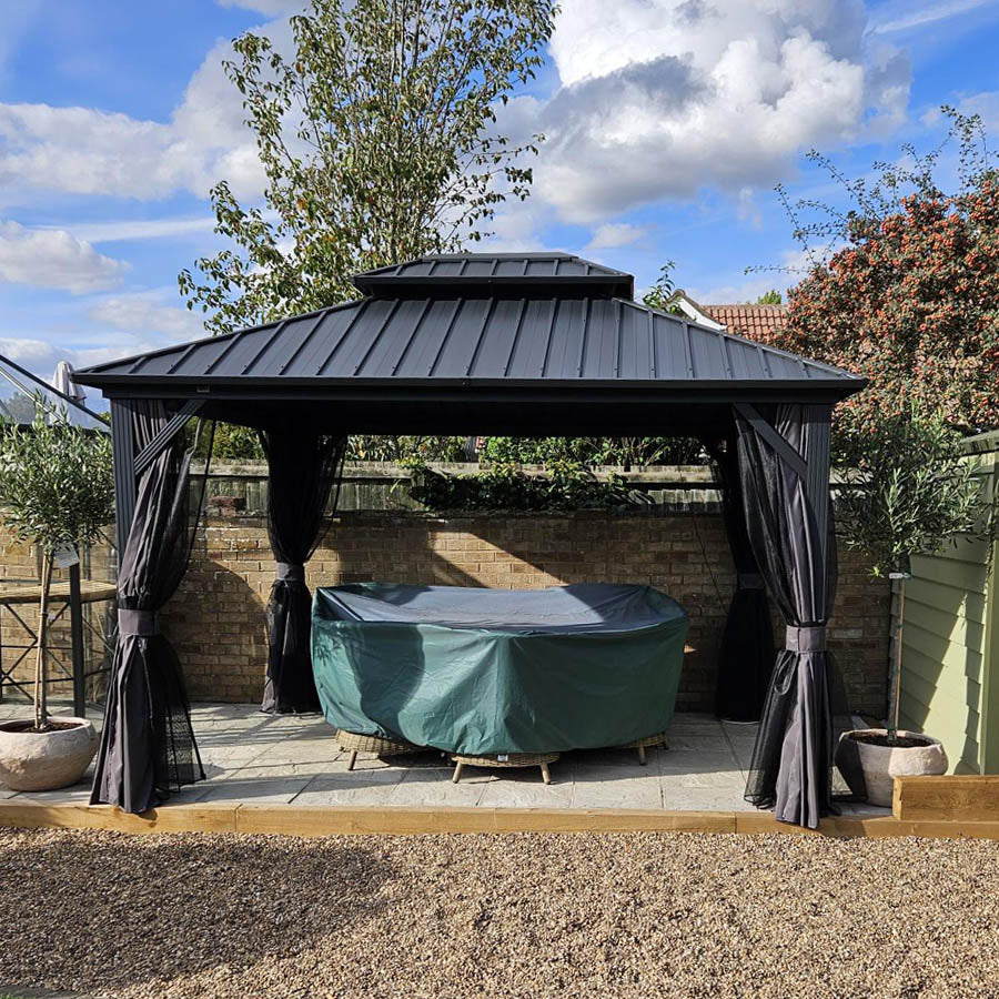 • [ Powder-coated Aluminum Frame ] Hardtop gazebo is constructed with a sturdy and lightweight aluminum framework, providing exceptional strength and durability. Make sure the gazebo is suitable for long-term outdoor use.