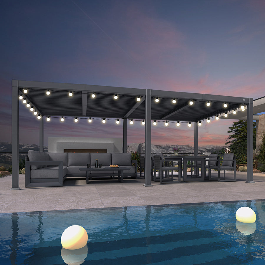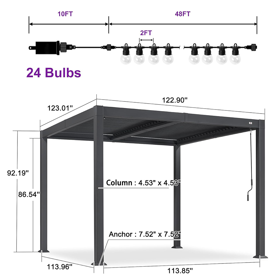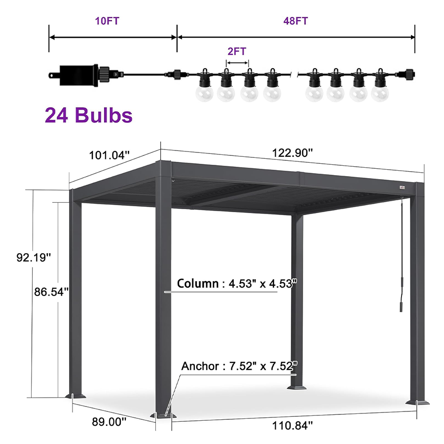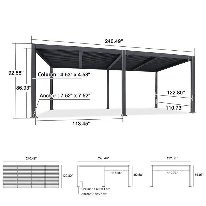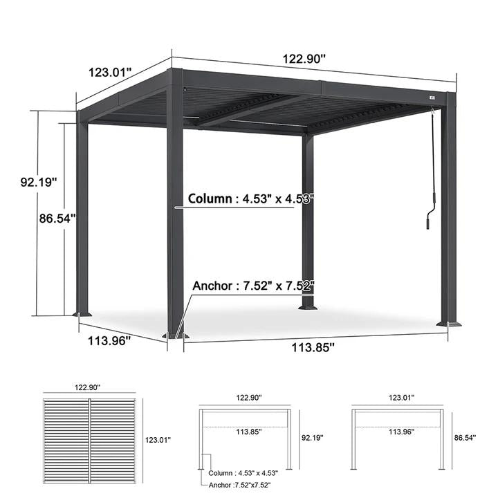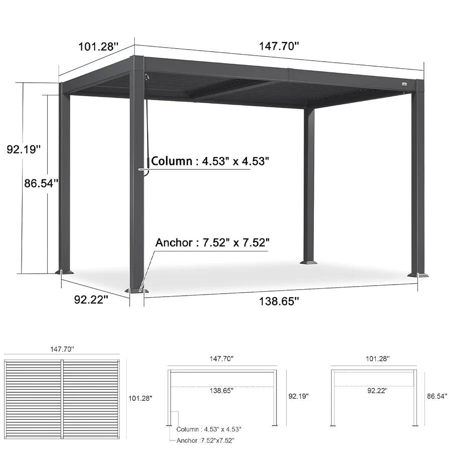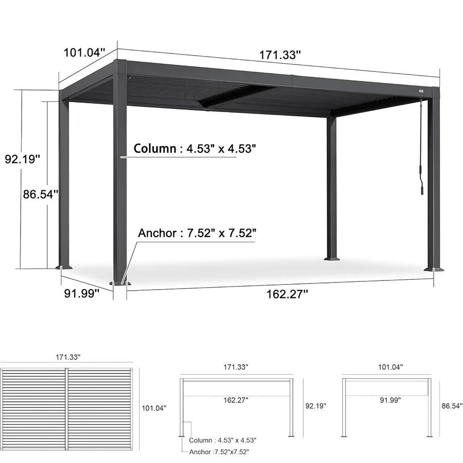 · Independent Adjustable Roof: With two rows of individually controlled louvered roofs, you can enjoy up to 120-310 square feet of shade while still being able to bask in the sun or gaze at the stars with this patio pergola.
