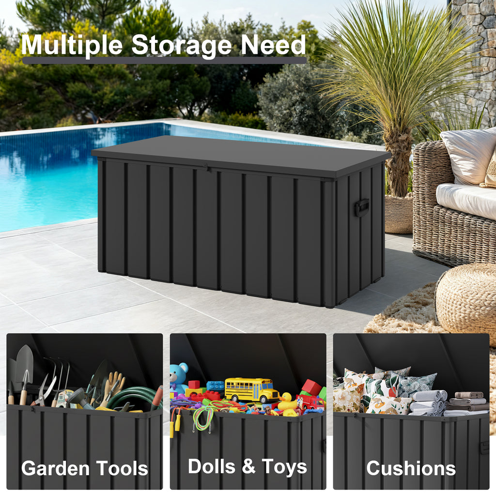 【Galvanized Steel Reinforced Lid】 This sturdy patio box with a galvanized steel-reinforced lid that is rustproof, fade-resistant, and weatherproof for long-lasting outdoor storage.