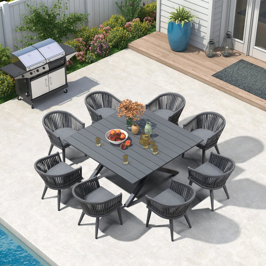 PURPLE LEAF Outdoor Dining Table Set All-Weather Aluminum with Wood Grain Table and Rope Woven Chairs Includes Backyard Patio Cushions