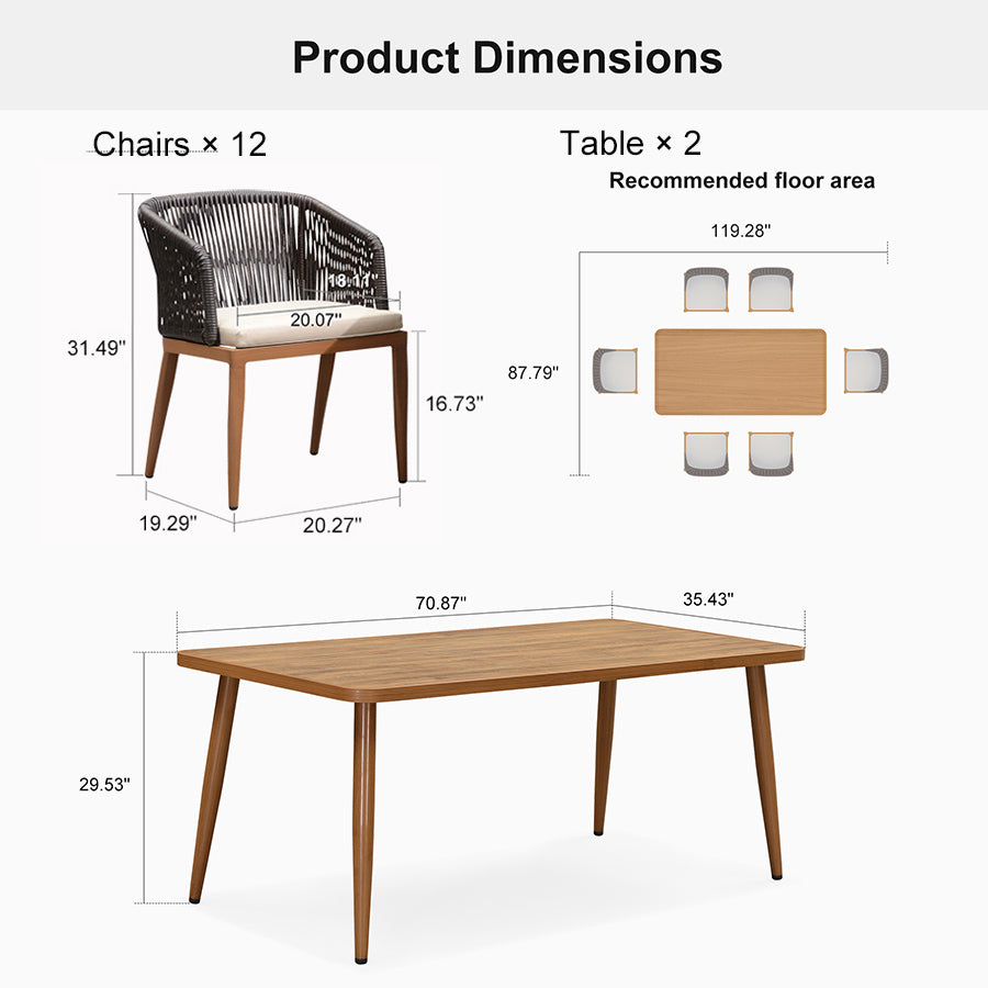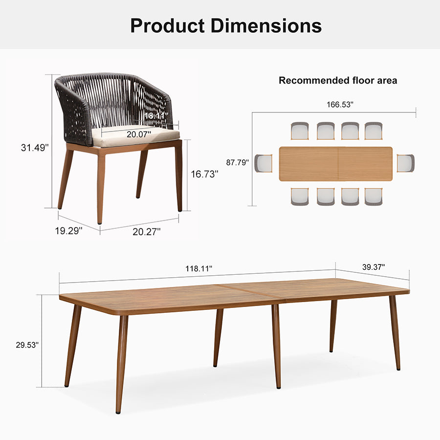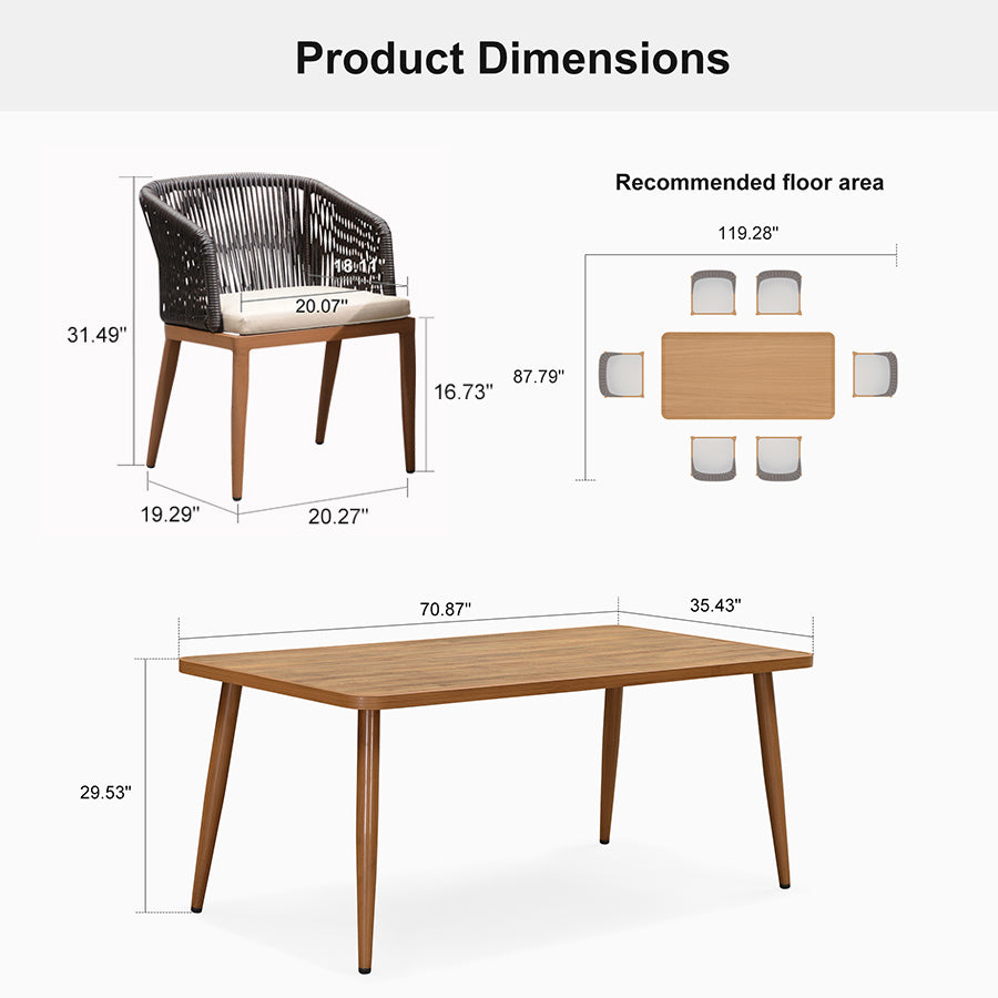 [ Solid Aluminum Frame ] Teak powder-coated aluminum frame can protect the patio dining set against rust, scratches and UV rays for long-term use.