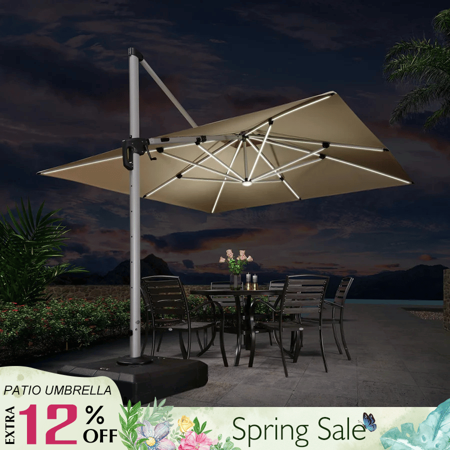 ● Sturdy Frame Guarantee: Full aluminum rib and 8 heavy duty ribs with LED tubes, anti-oxidation spray paint, long service life. This cantilever umbrella features a sturdy aluminum frame to help ensure stability in all conditions, providing greater support for strength and durability.