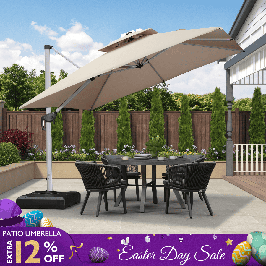 Discover the perfect fusion of style and utility with the PURPLE LEAF Double Top Cantilever Umbrella, designed to transform any outdoor space into a sunny retreat. Our elegantly crafted umbrella features a dual canopy system for superior shade and a cantilever design that eliminates the need for a central pole, providing clear visibility and plenty of unobstructed seating space.